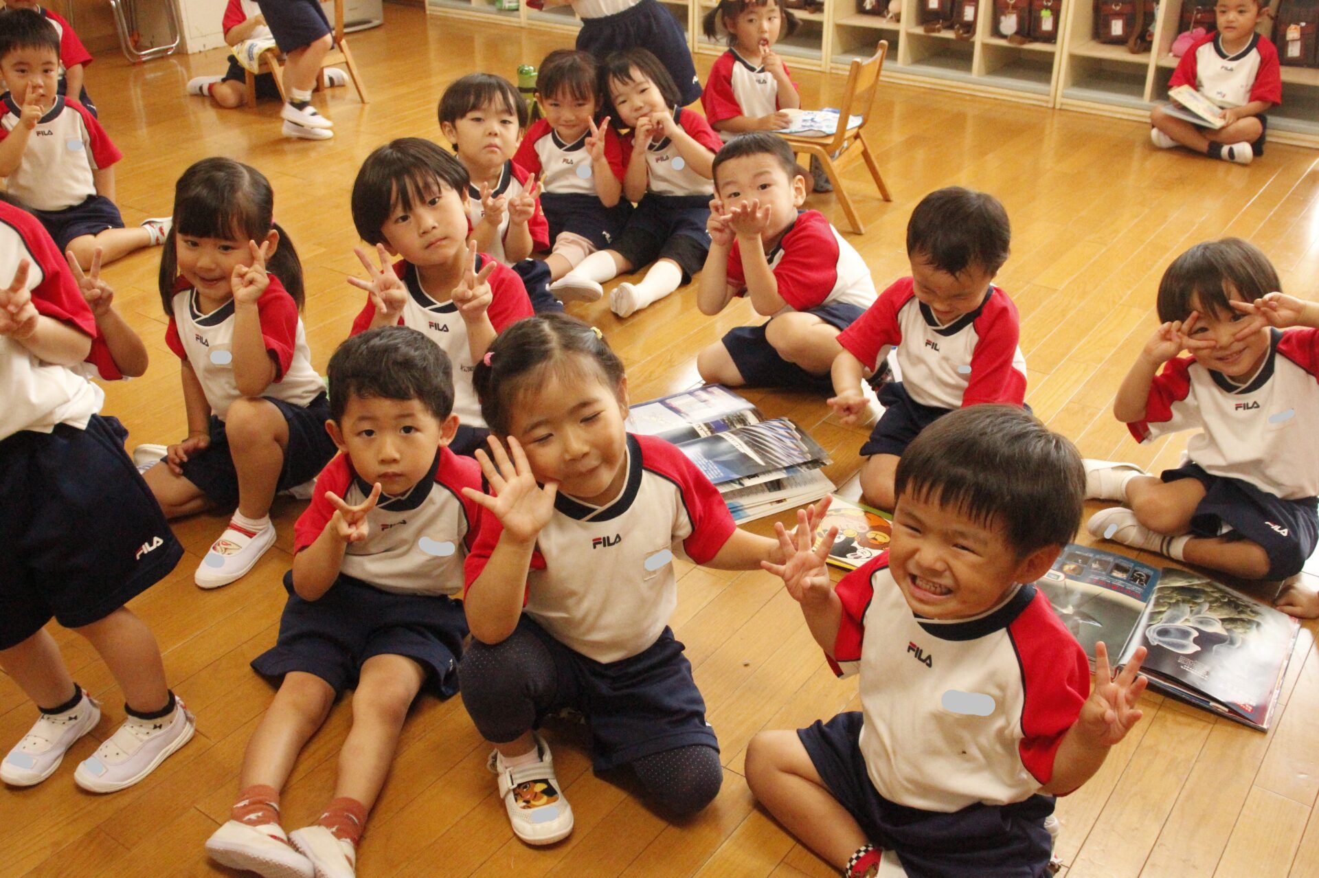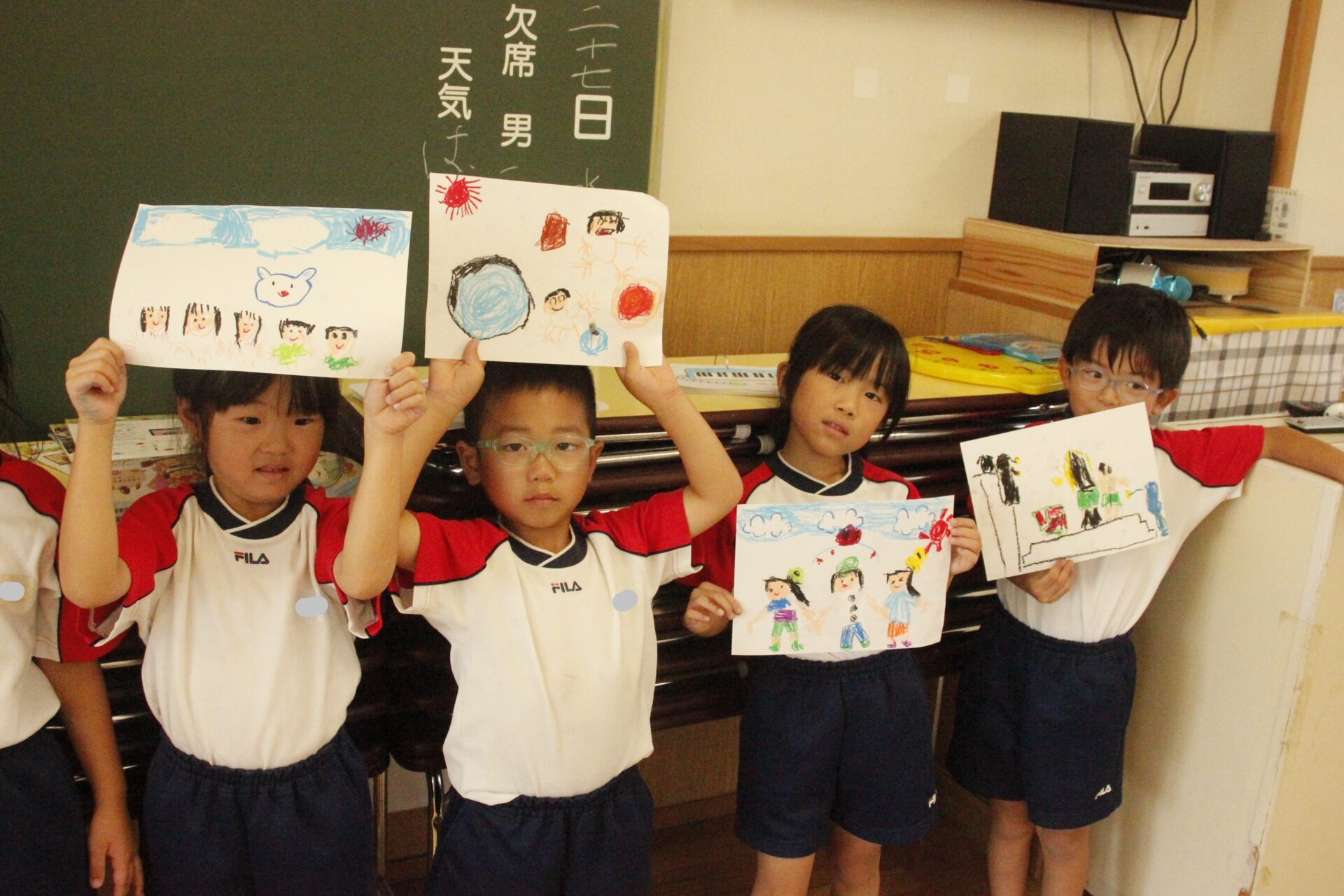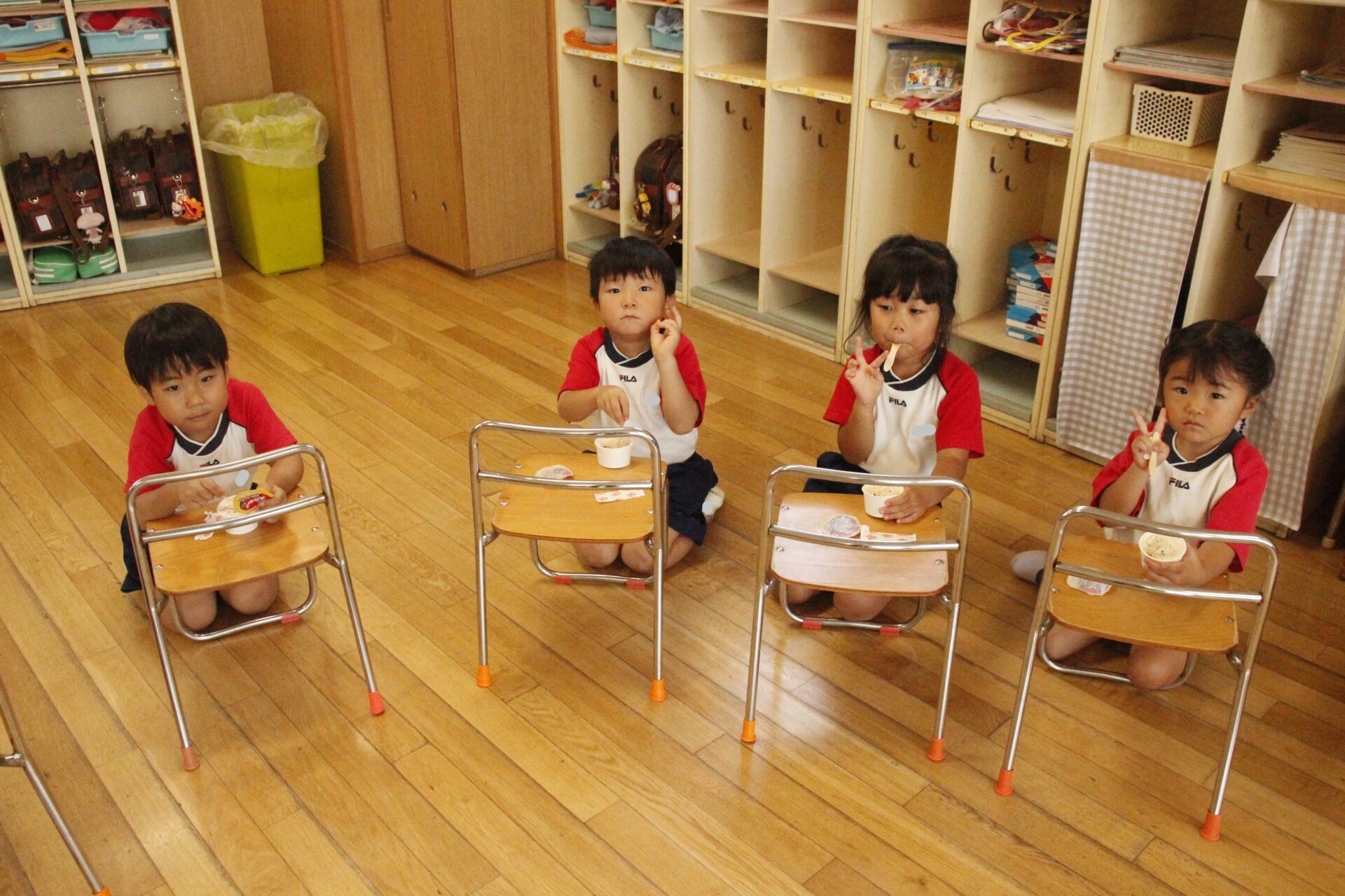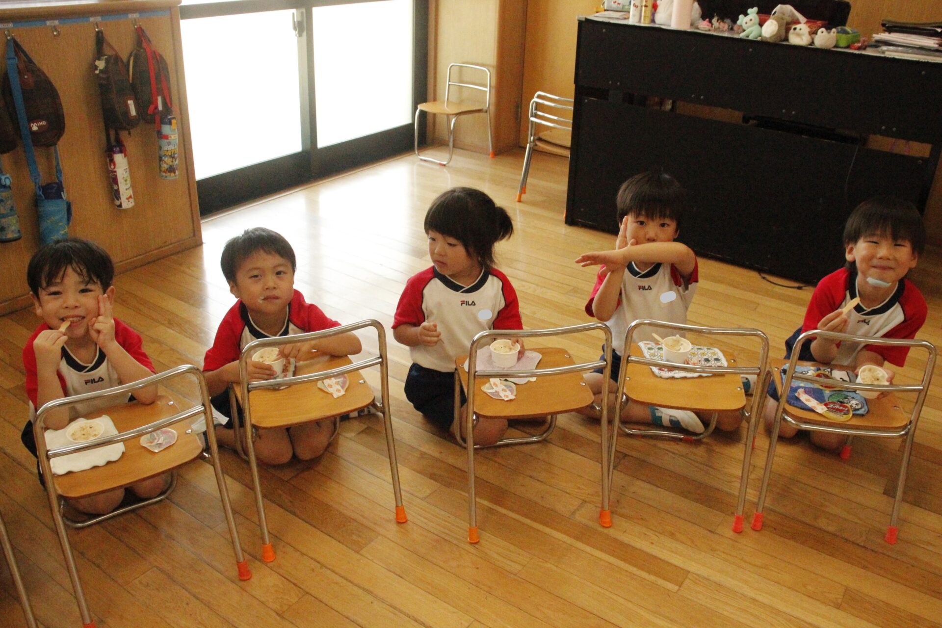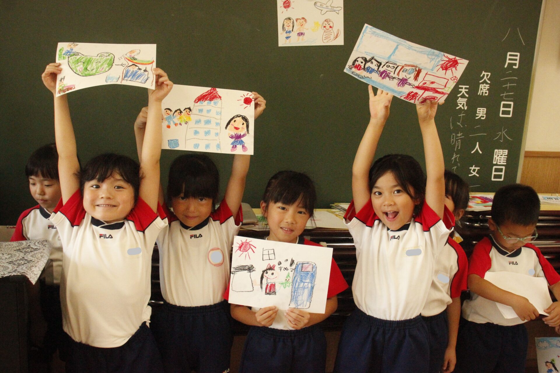 先生やお友達と夏休みの思い出話をしたり、夏の思い出を絵に描いたり、クラス皆で椅子取りゲームをして遊んだりして各クラスで過ごしました。