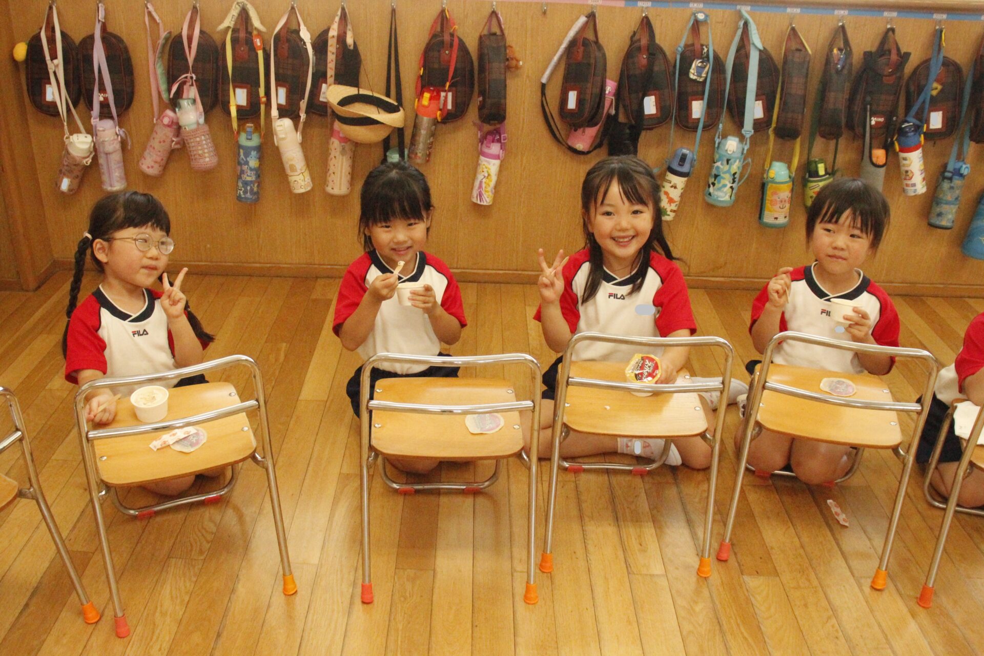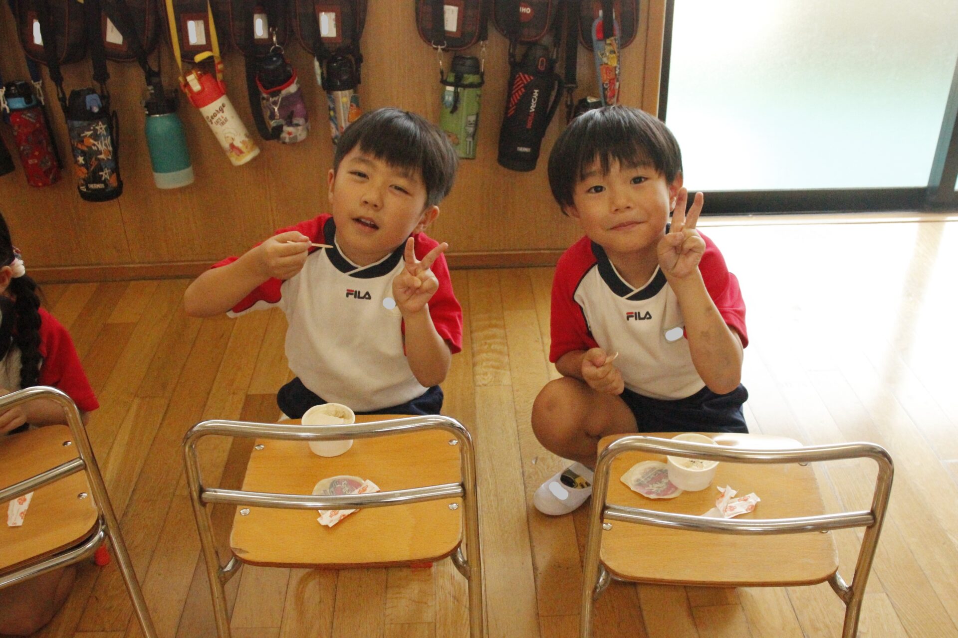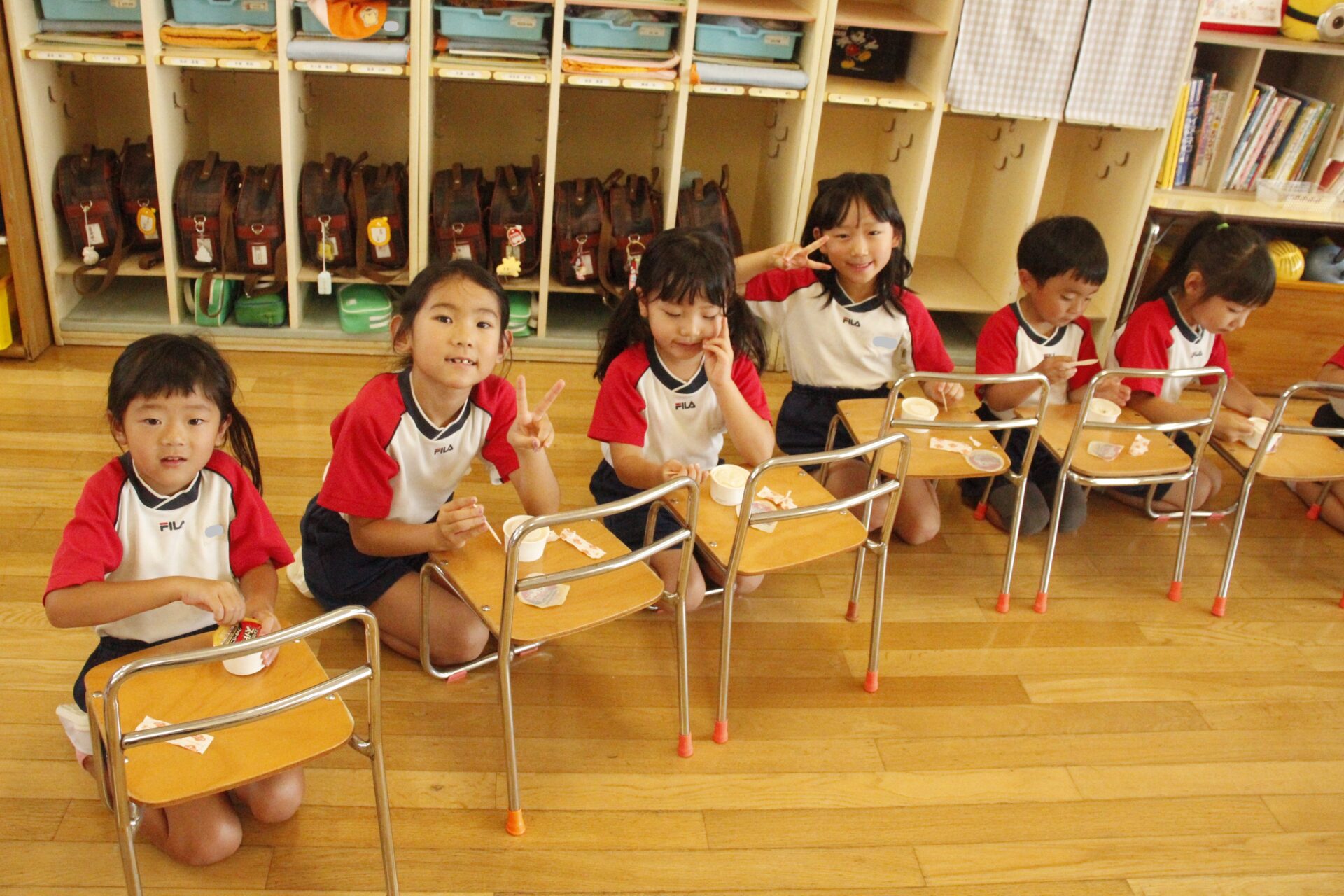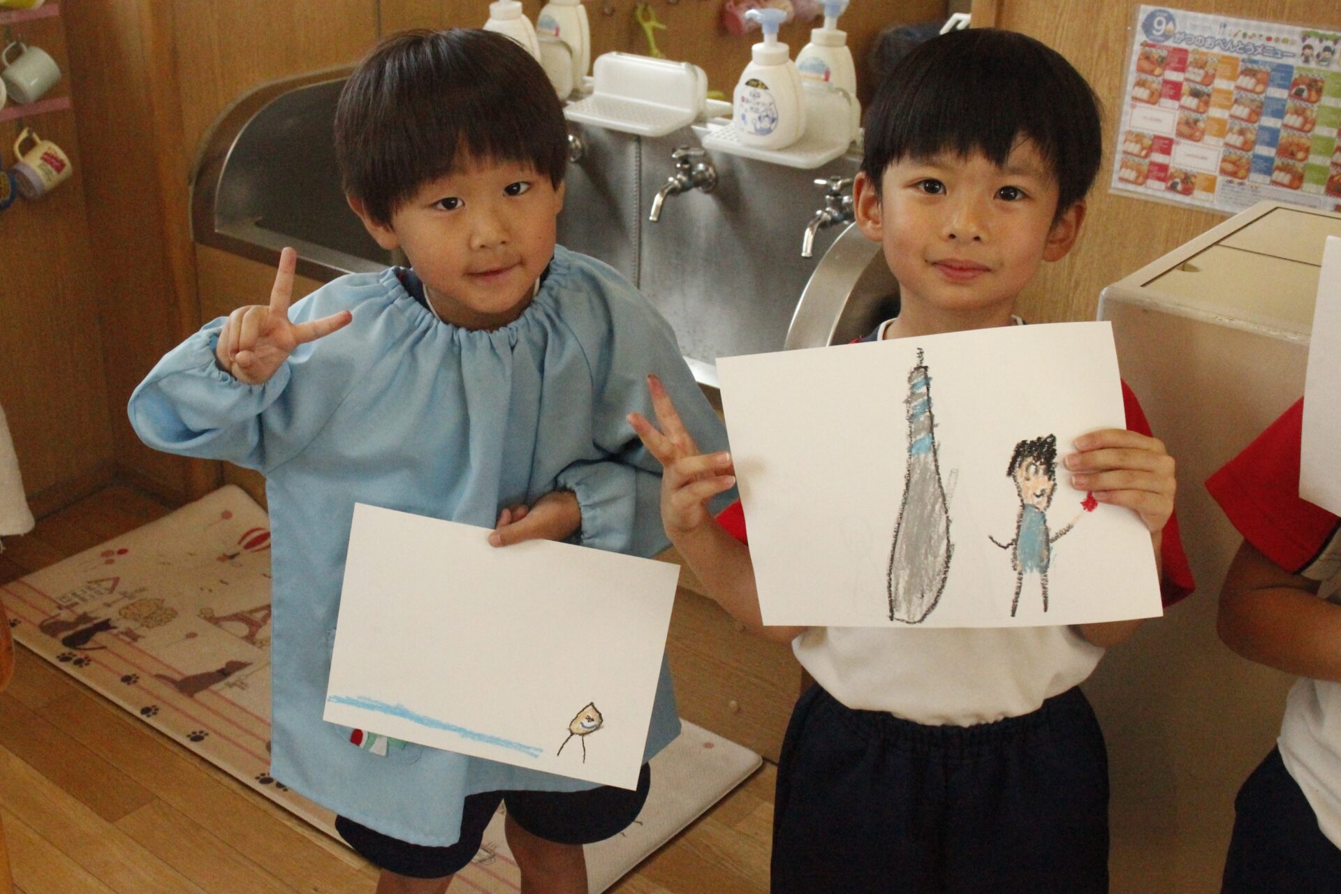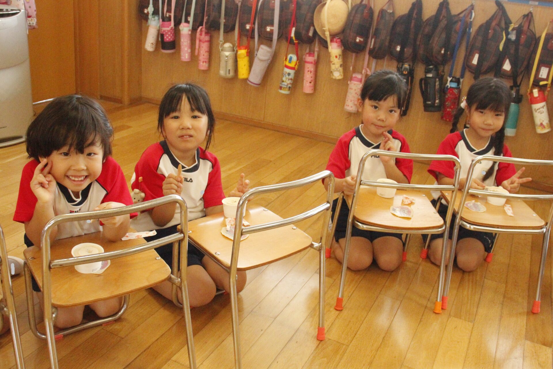 先生やお友達と夏休みの思い出話をしたり、夏の思い出を絵に描いたり、クラス皆で椅子取りゲームをして遊んだりして各クラスで過ごしました。