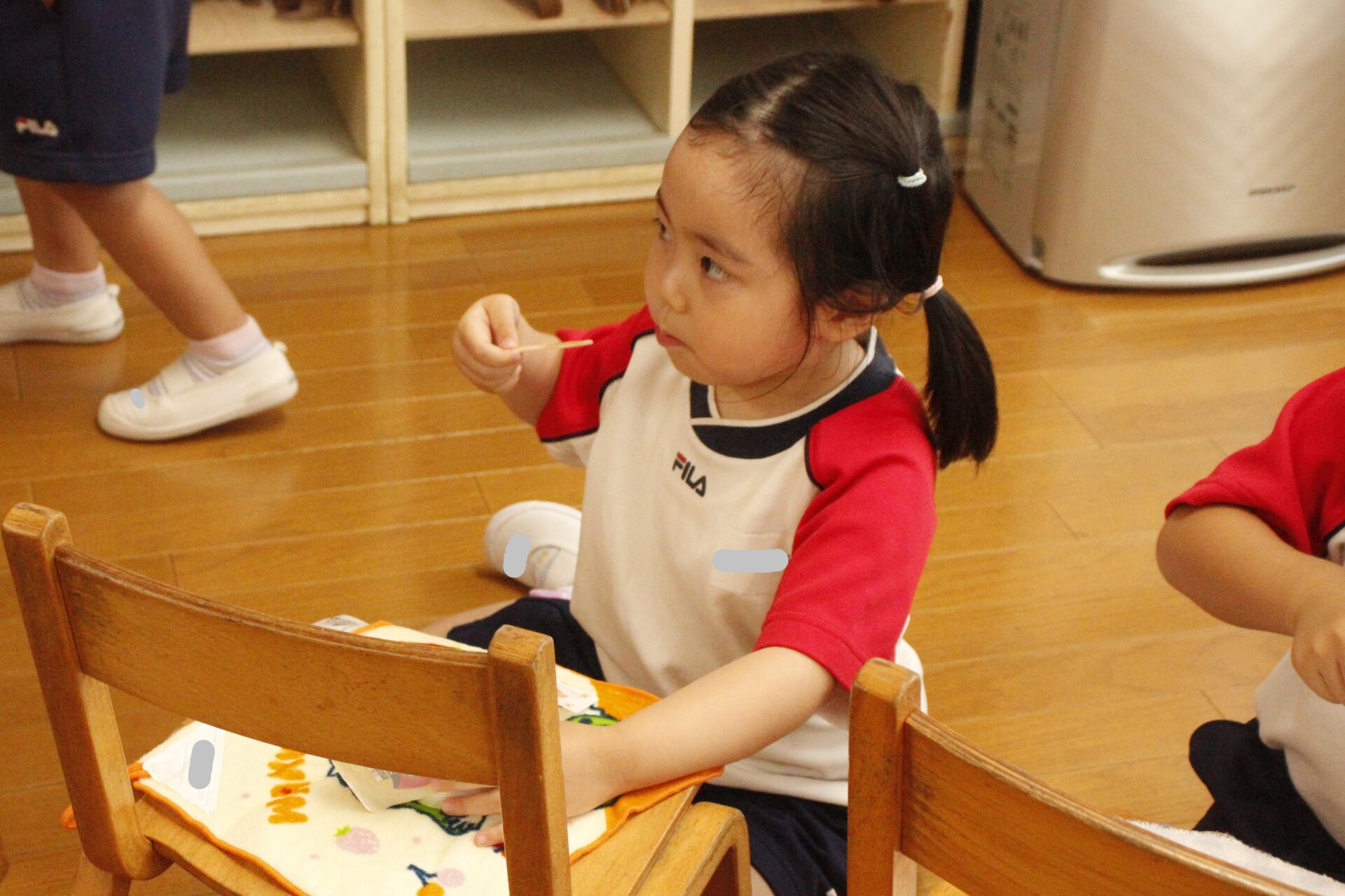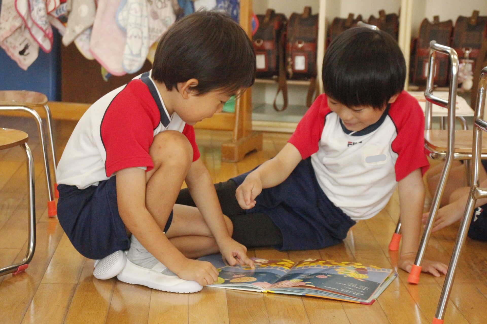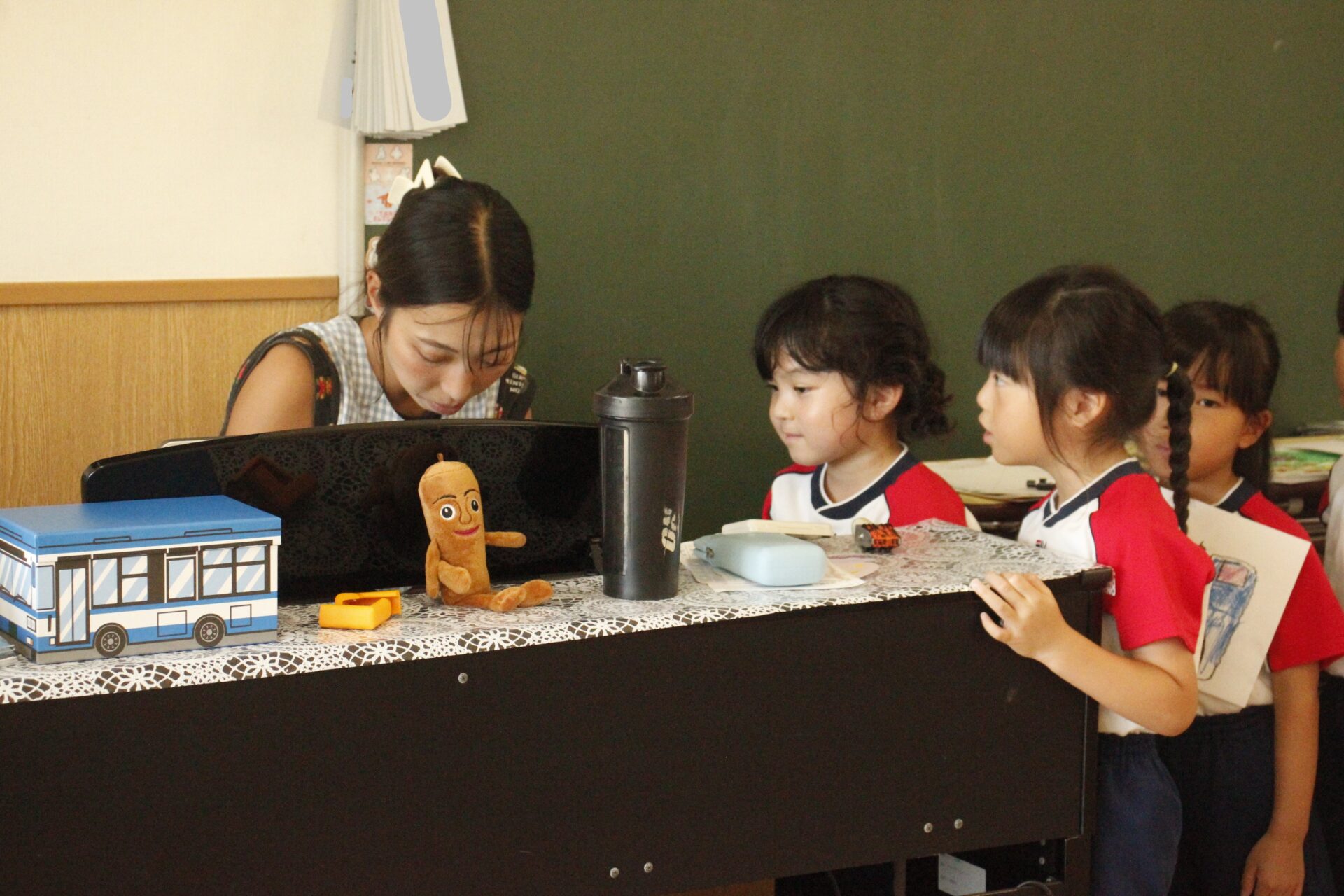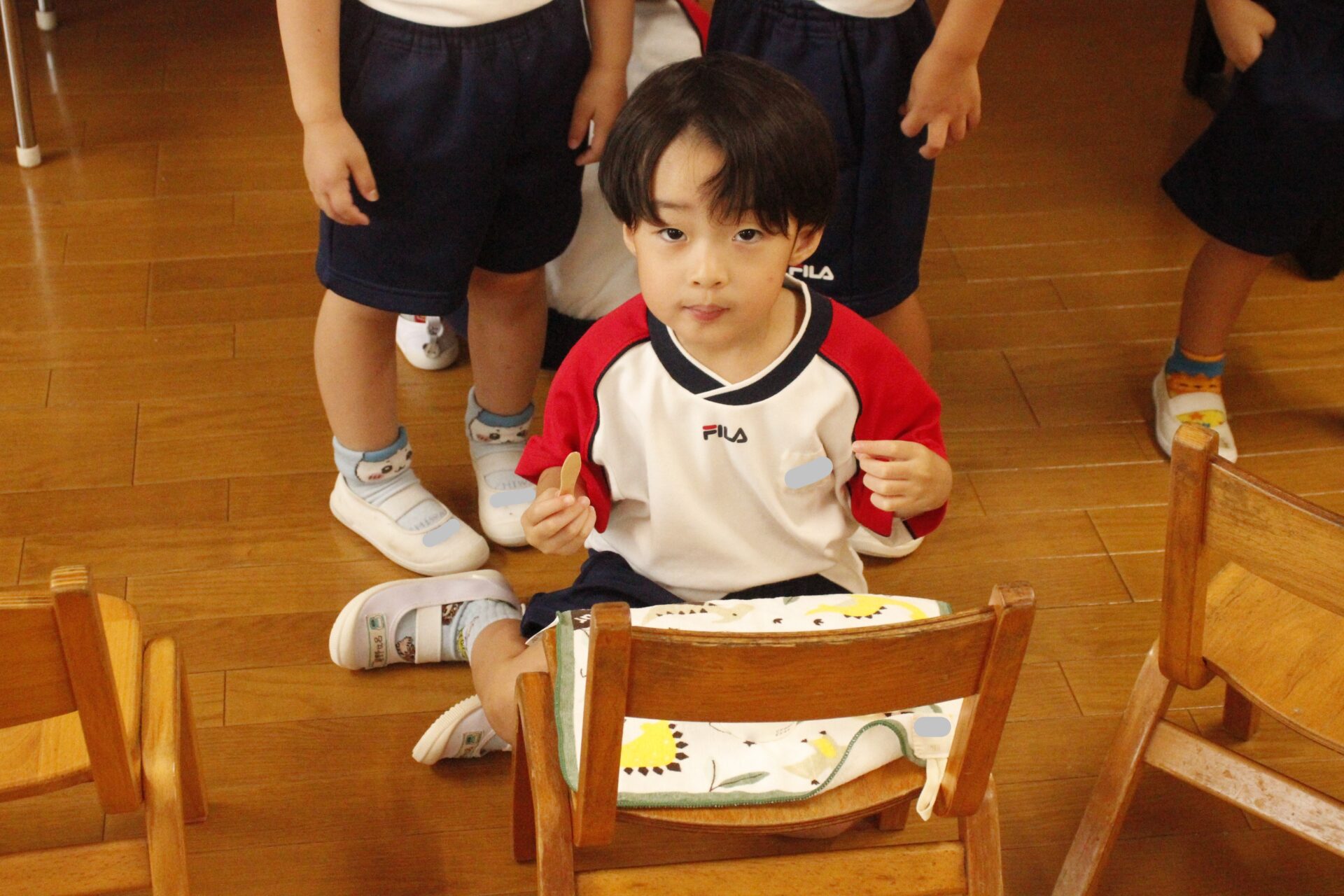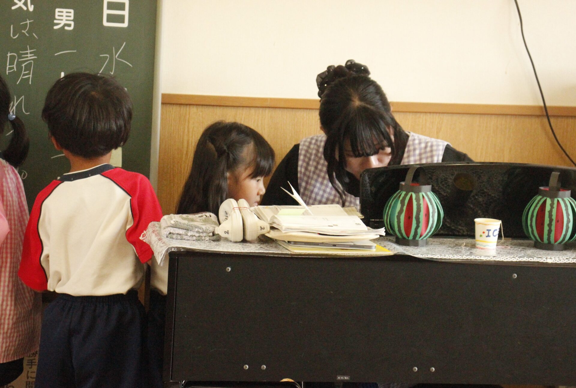 先生やお友達と夏休みの思い出話をしたり、夏の思い出を絵に描いたり、クラス皆で椅子取りゲームをして遊んだりして各クラスで過ごしました。