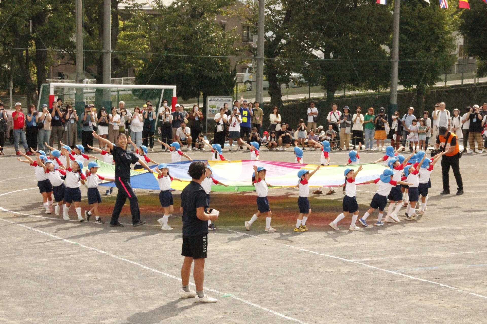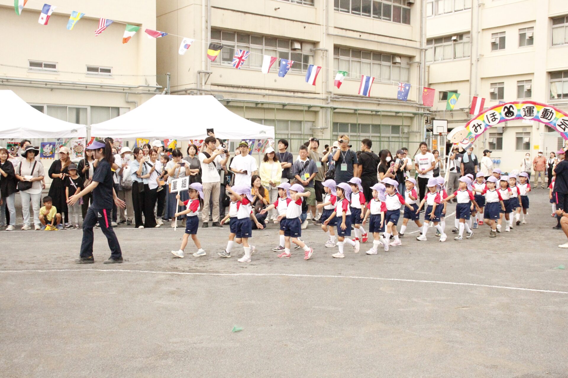 9月27日(土)三保小学校校庭にて、『みほ幼稚園運動会』を開催しました。前夜のゲリラ豪雨で、校庭に水たまりがあったり、ラインが消えていたりしましたが、8:40の開門時間までに準備を完了させて予定通りスタートできました。