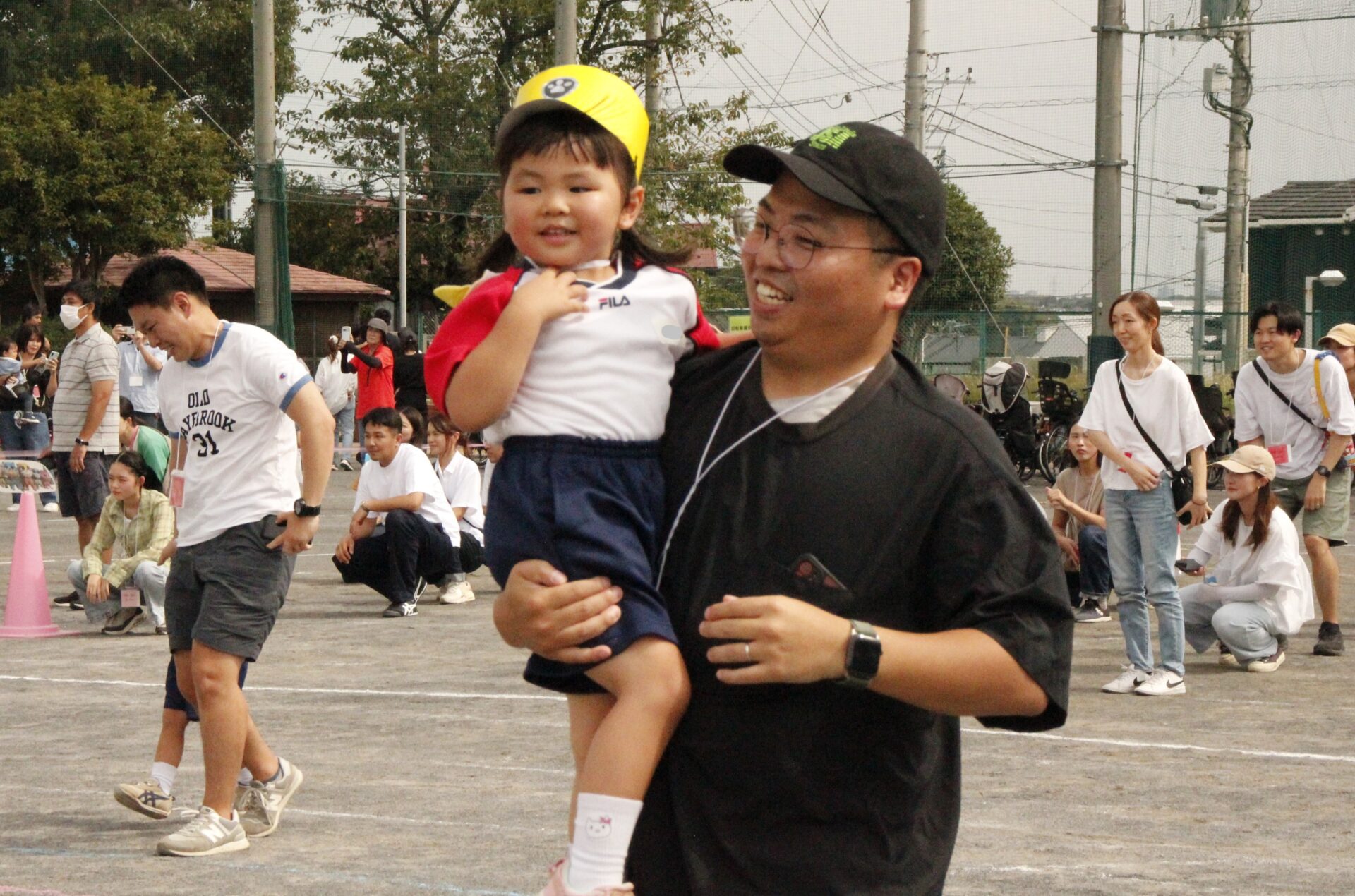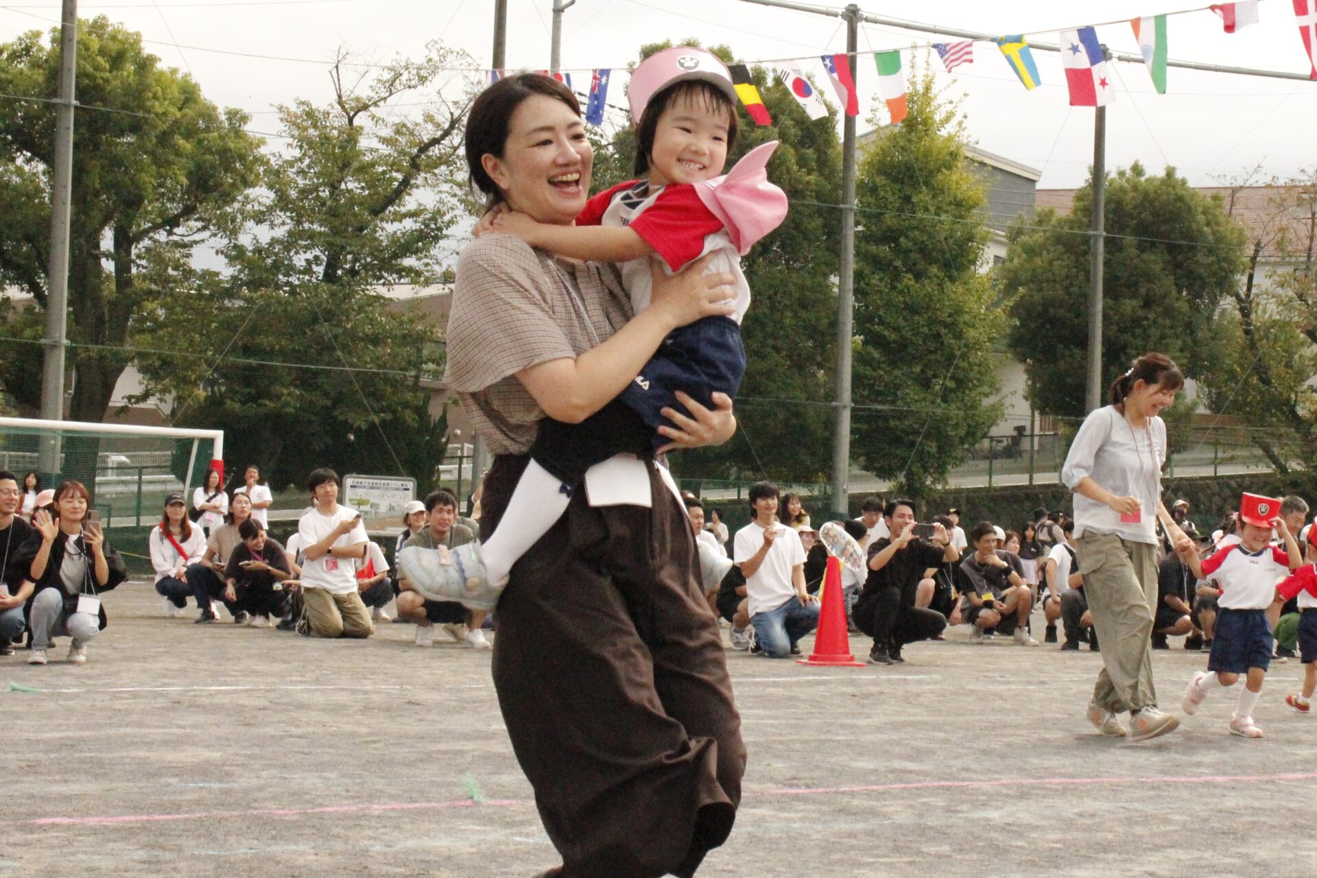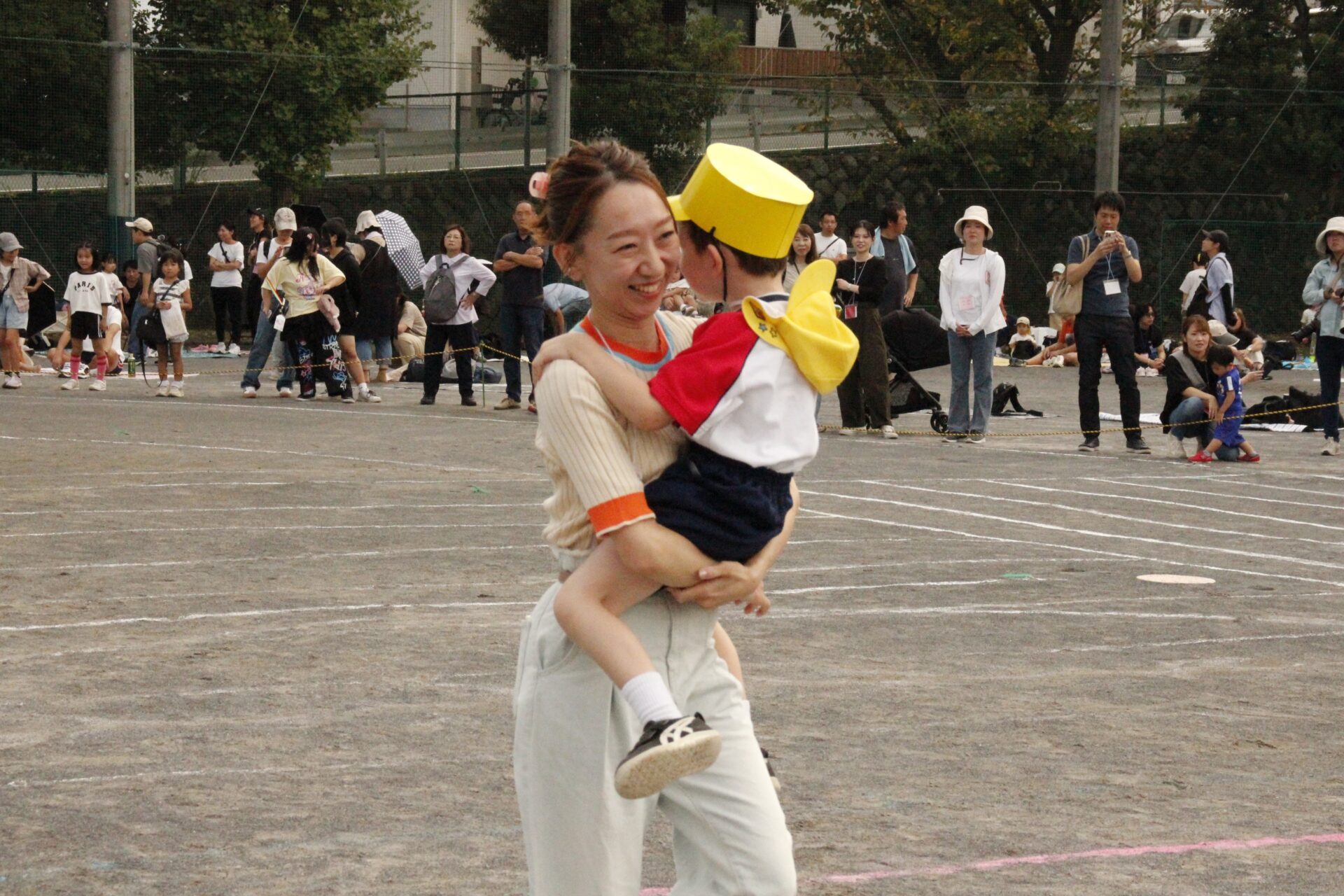 パパママに抱っこしてもらい、嬉しそうな表情の年少さん!保護者様がお子様をギュッと抱きしめる場面も心温まります!