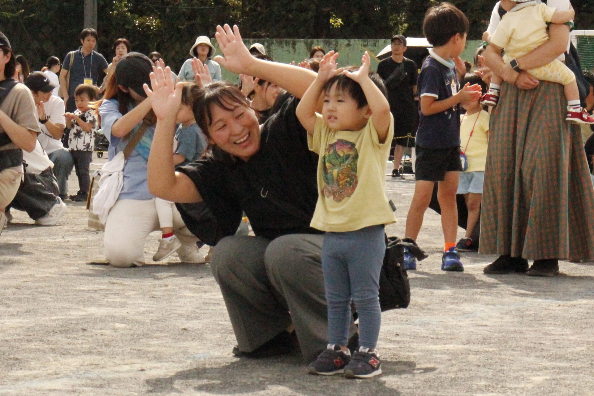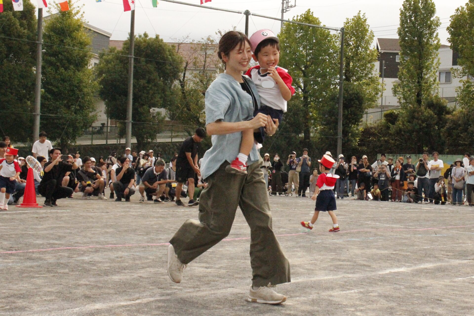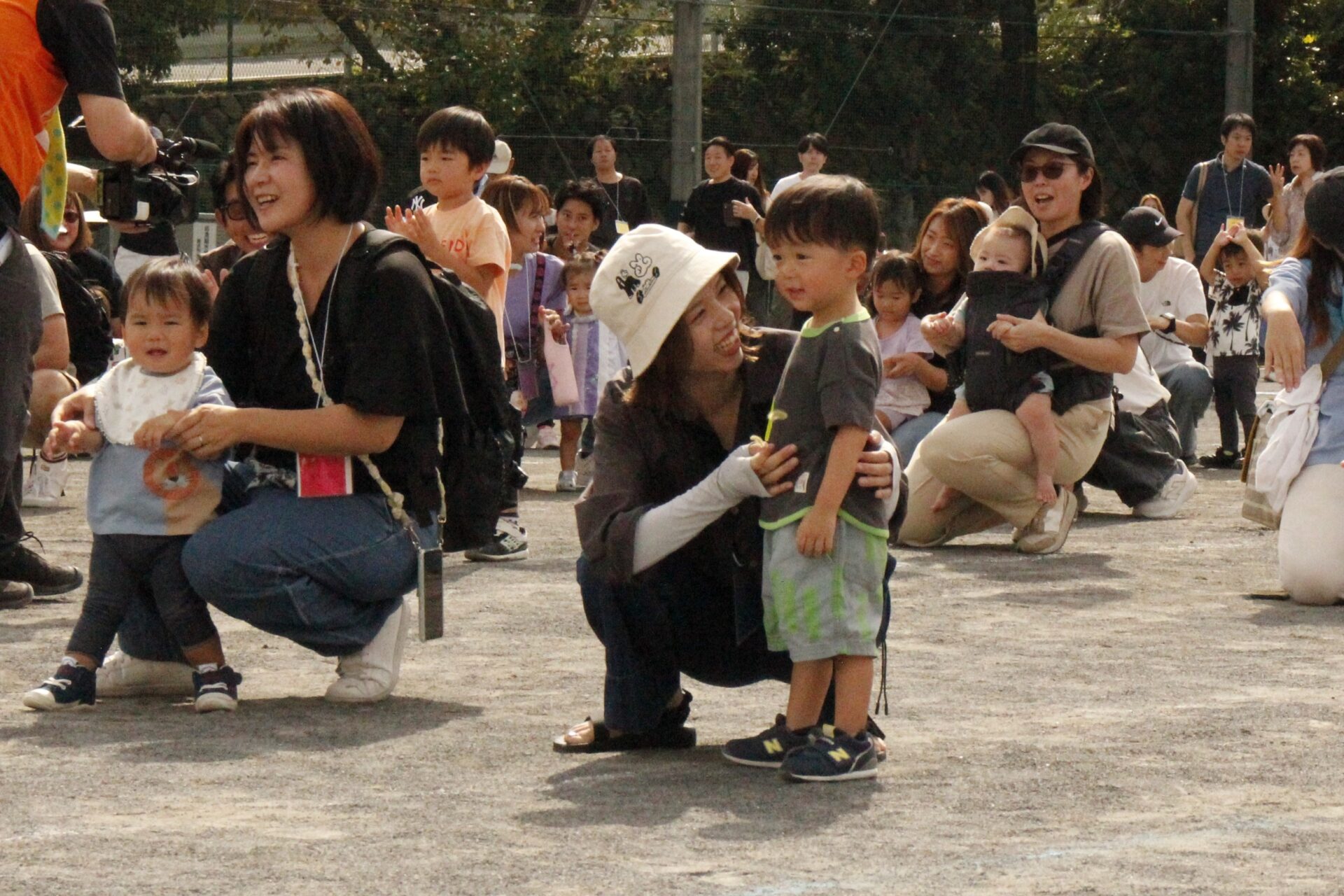パパママに抱っこしてもらい、嬉しそうな表情の年少さん!保護者様がお子様をギュッと抱きしめる場面も心温まります!