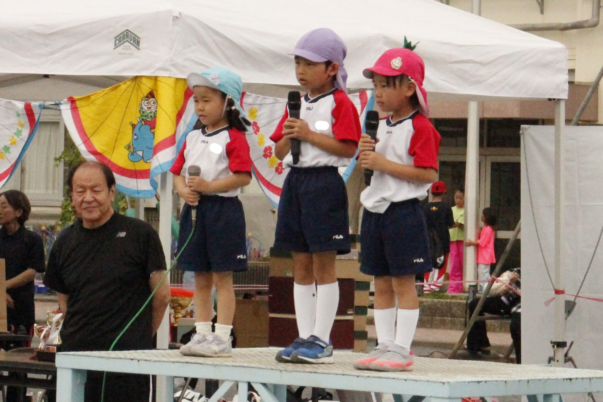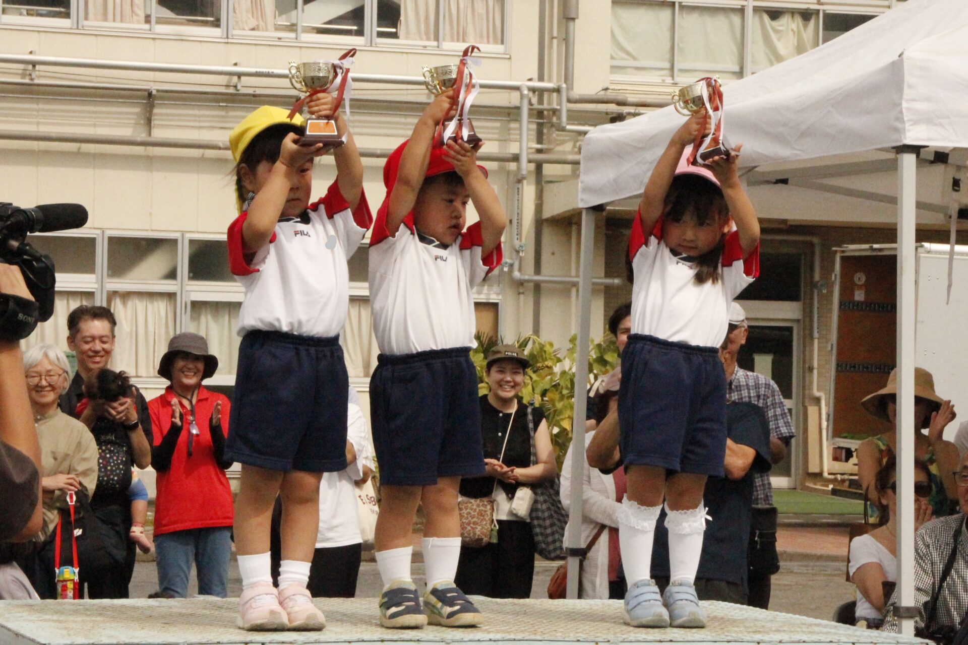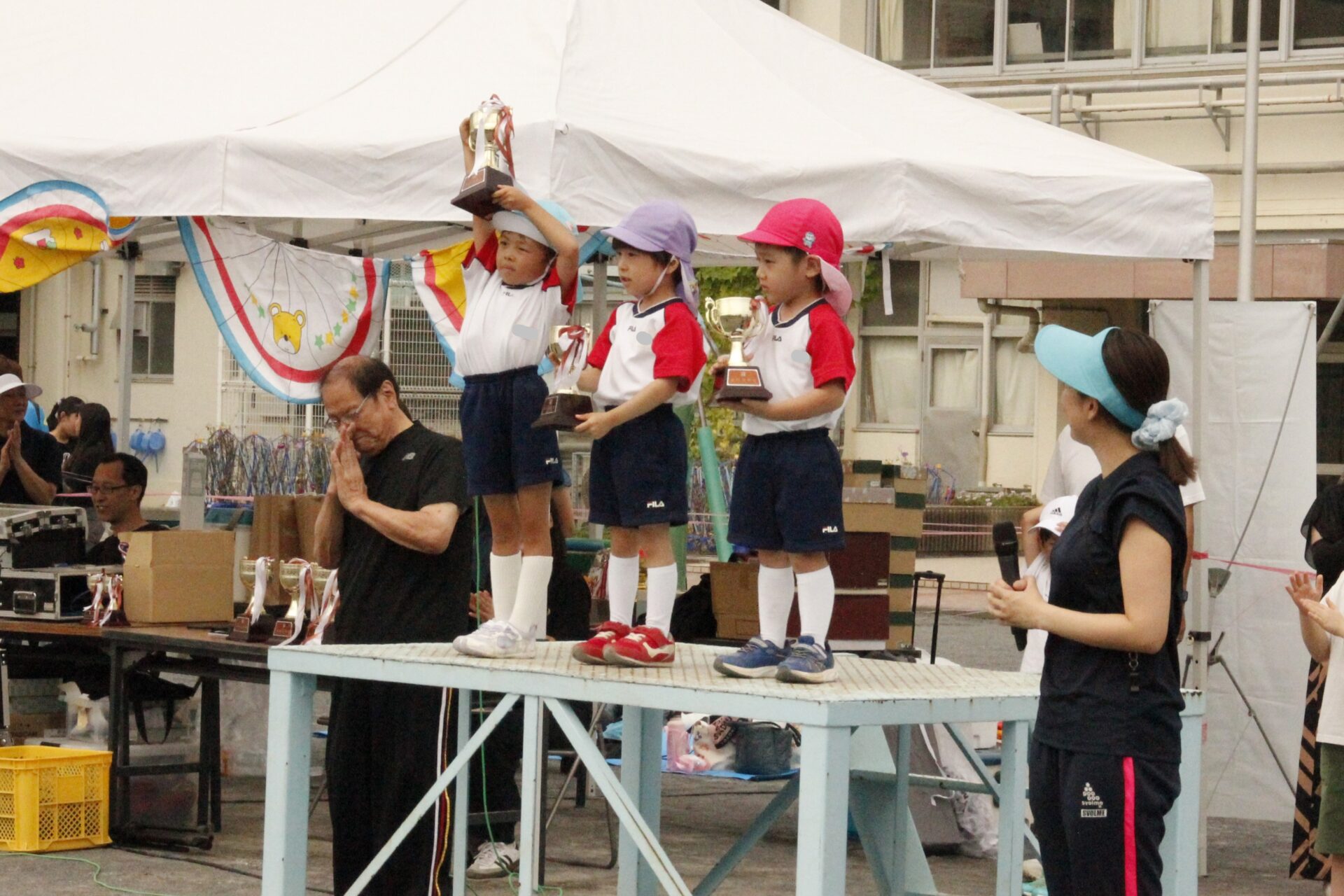 代表園児による、カップ授与、閉会の言葉、共に立派に務めました!