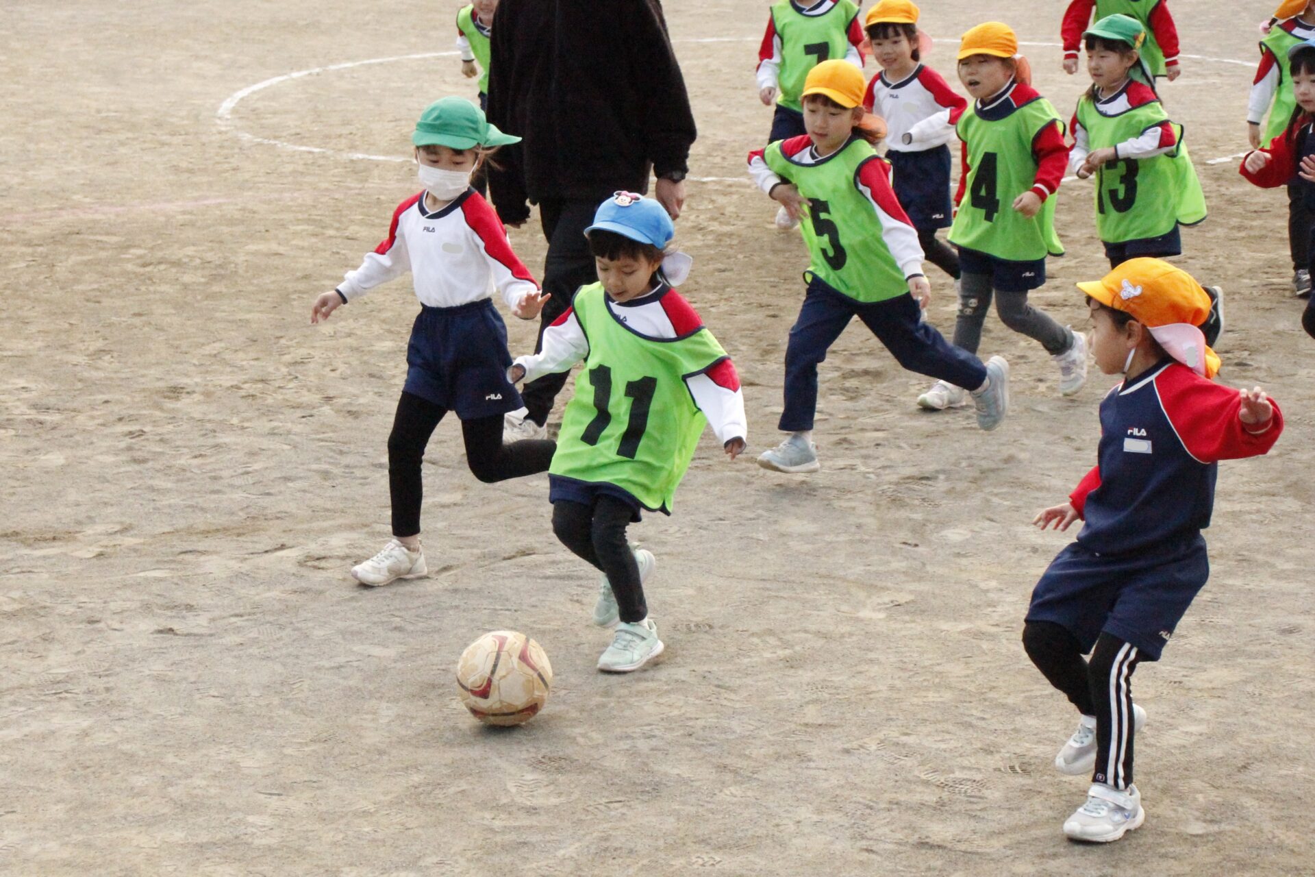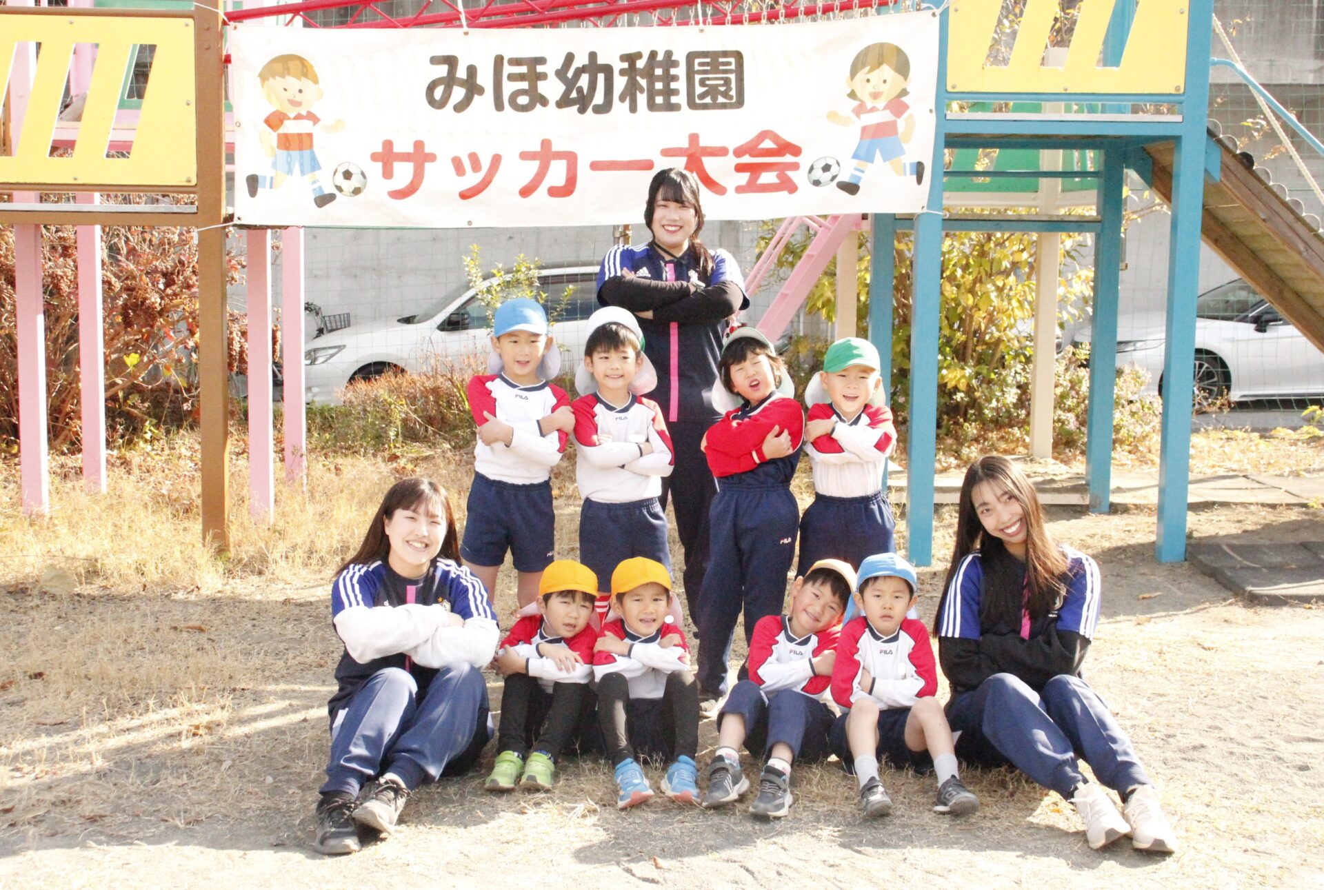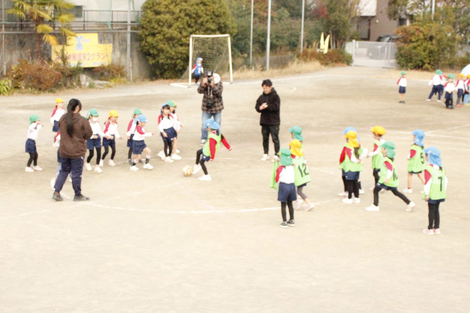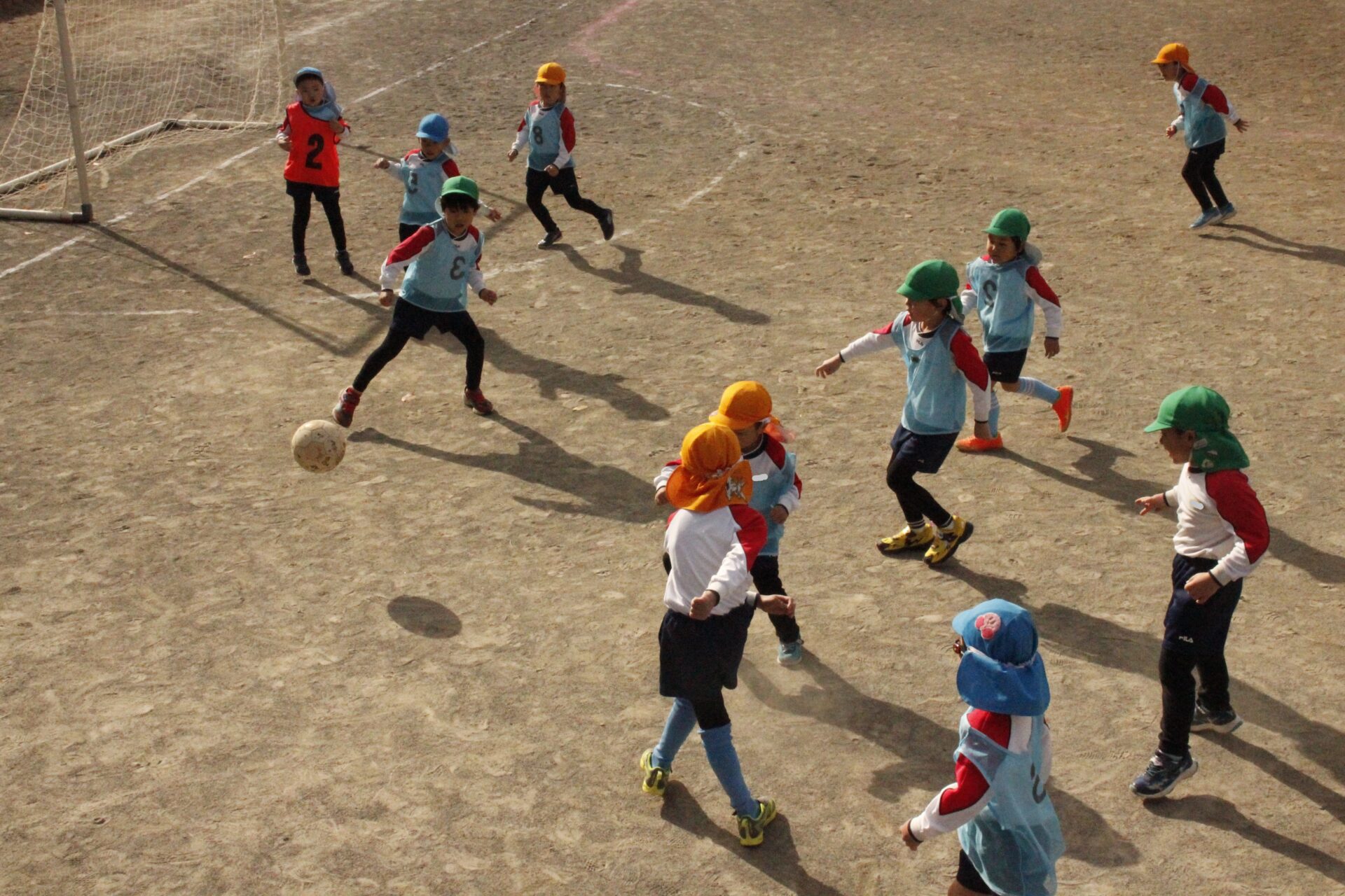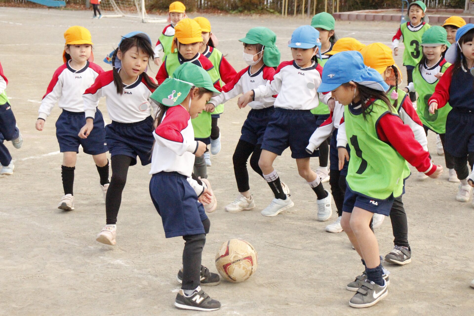 12月9日(火)みほ幼稚園第2グラウンドで、年長サッカー大会を開催しました。クラス関係なく、男女ともににチームを作って競い合いました。風が少し冷たかったのですが、元気な子ども達には全く関係なく、元気にグラウンドを走りまわっていました。