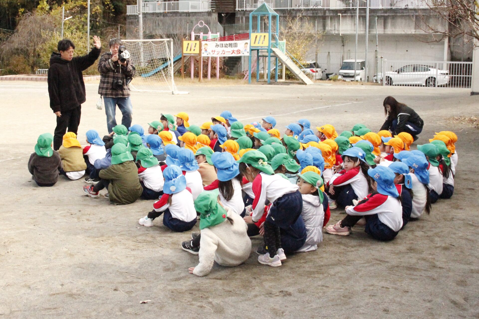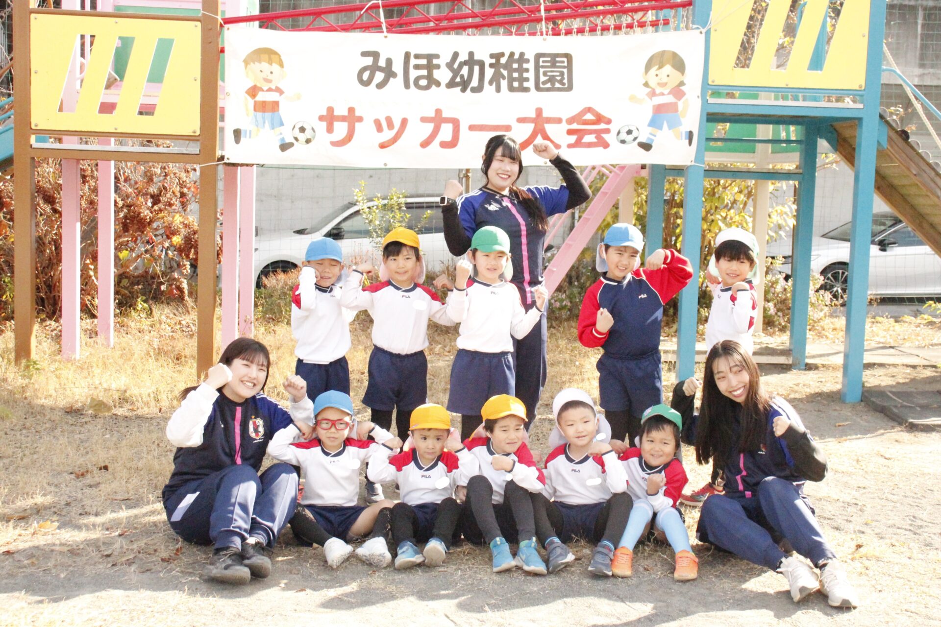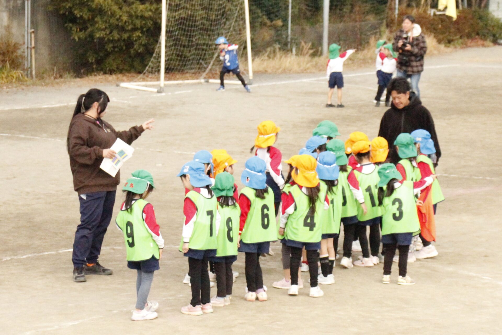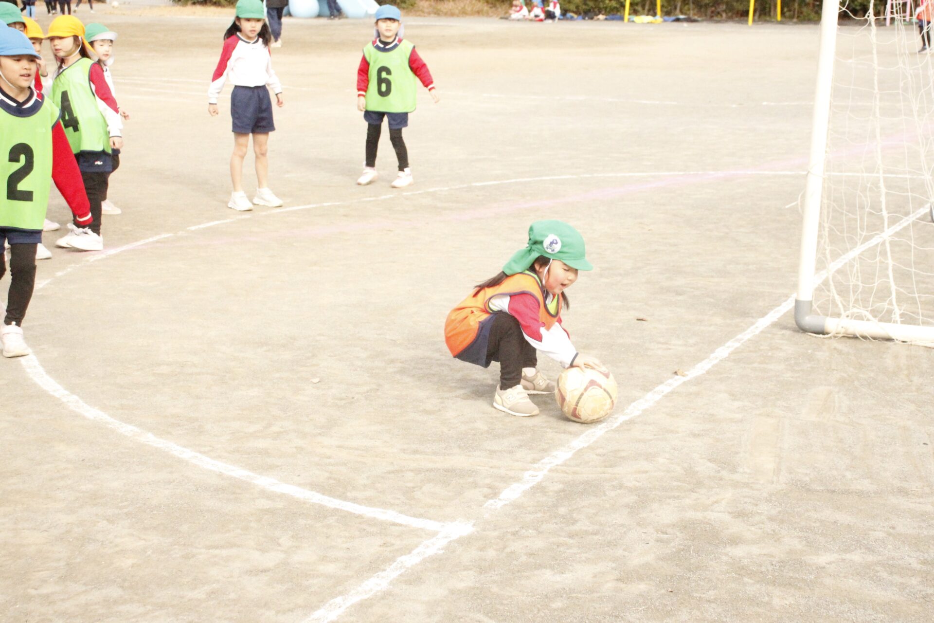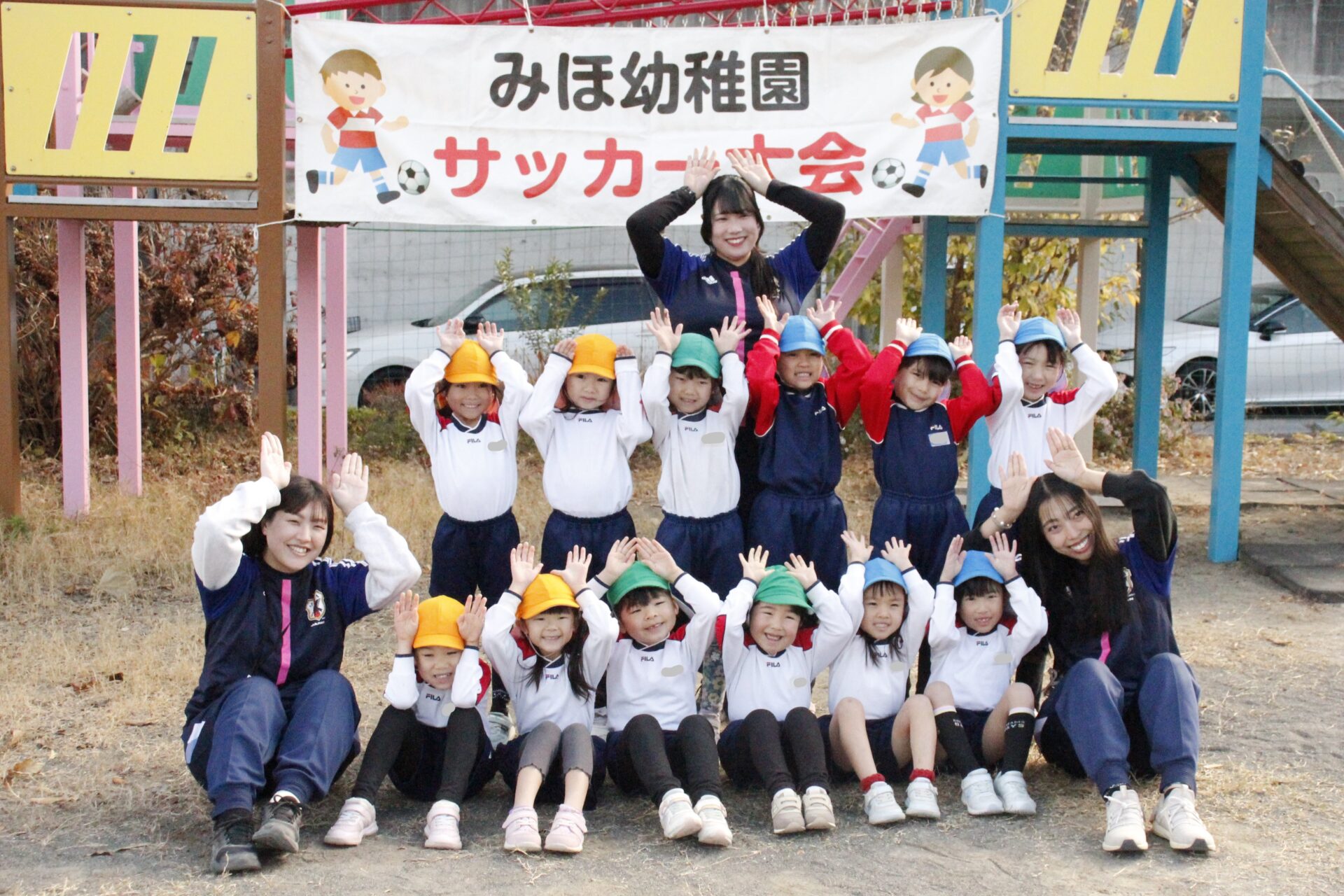 12月9日(火)みほ幼稚園第2グラウンドで、年長サッカー大会を開催しました。クラス関係なく、男女ともににチームを作って競い合いました。風が少し冷たかったのですが、元気な子ども達には全く関係なく、元気にグラウンドを走りまわっていました。
