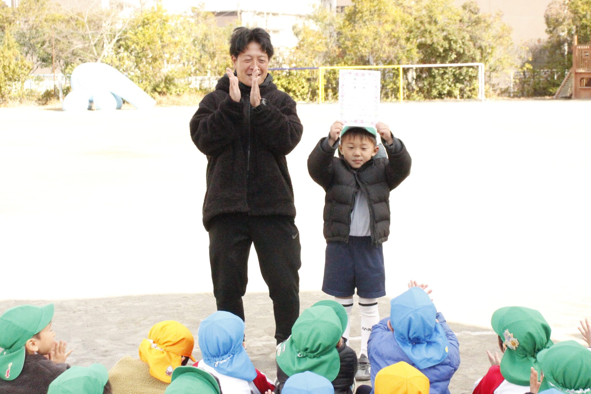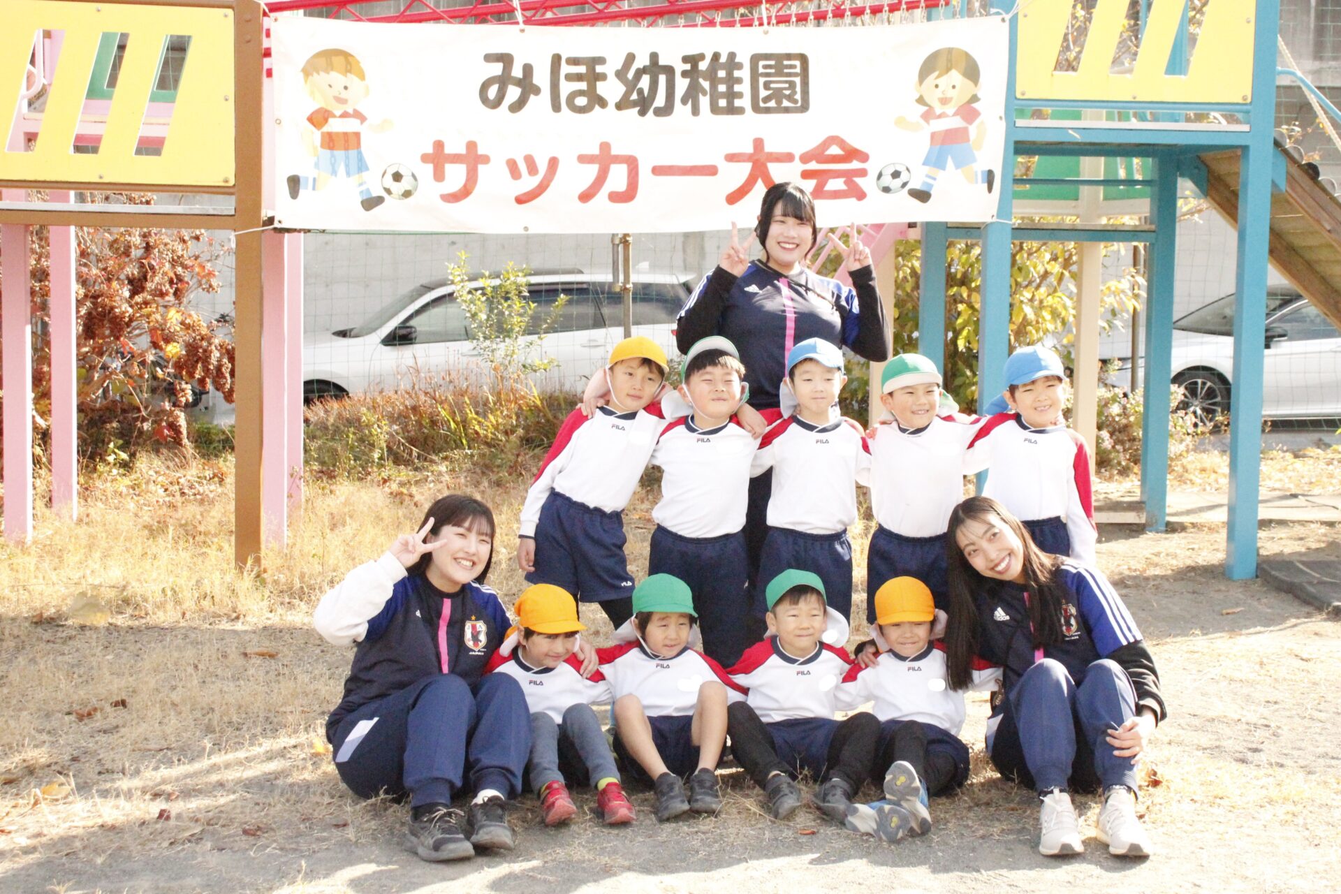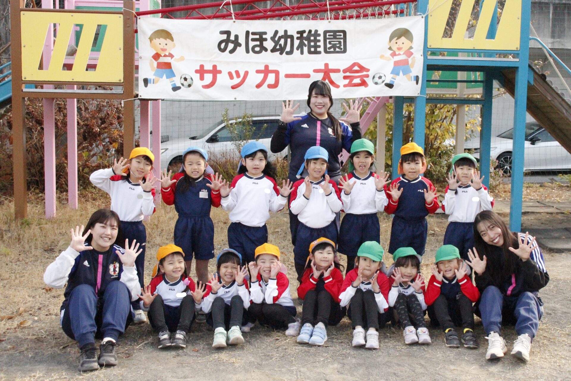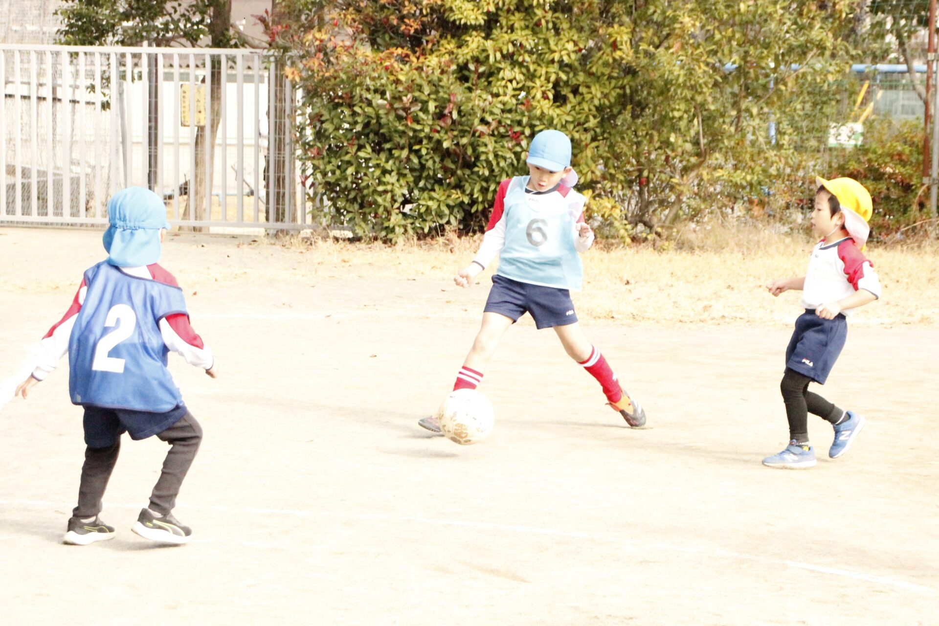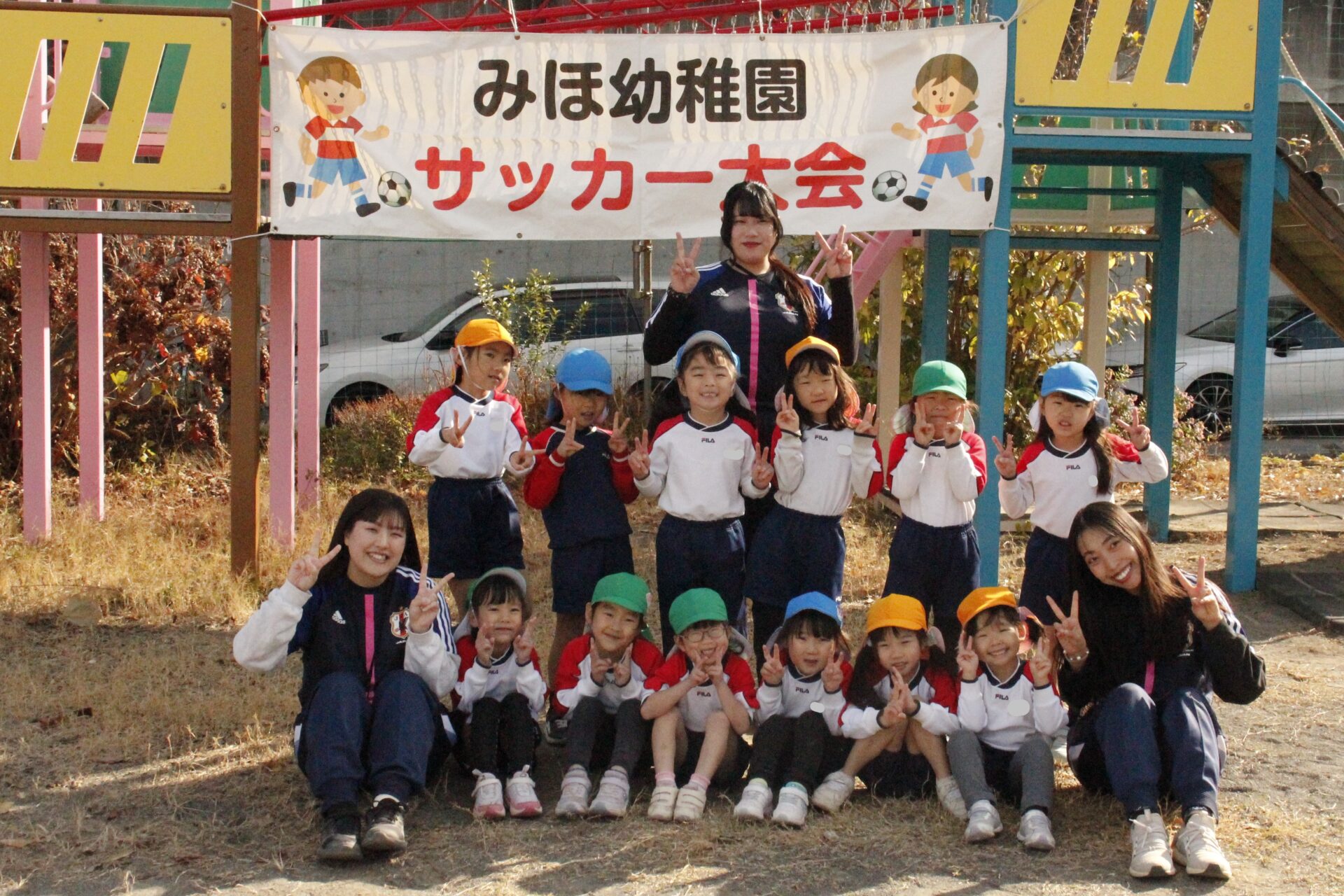 12月9日(火)みほ幼稚園第2グラウンドで、年長サッカー大会を開催しました。クラス関係なく、男女ともににチームを作って競い合いました。風が少し冷たかったのですが、元気な子ども達には全く関係なく、元気にグラウンドを走りまわっていました。