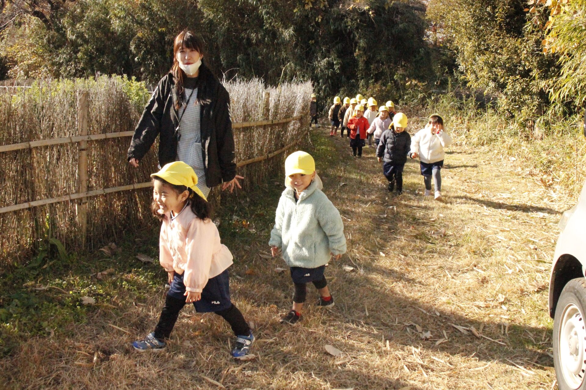 12月上旬、武蔵中山台にある農家さんの畑で大根掘りをしました。バスを降りてから畑までの林道ではドングリを拾ったりして、この時期ならではの自然を感じながら畑に向かいました。