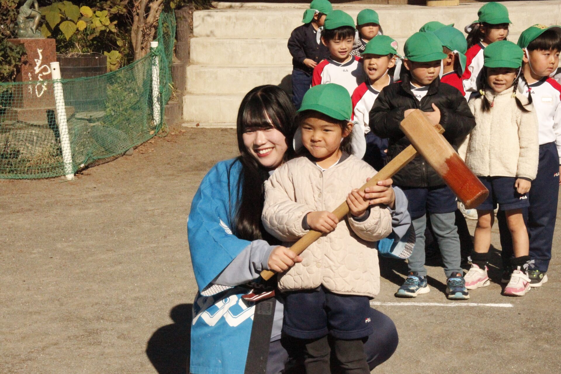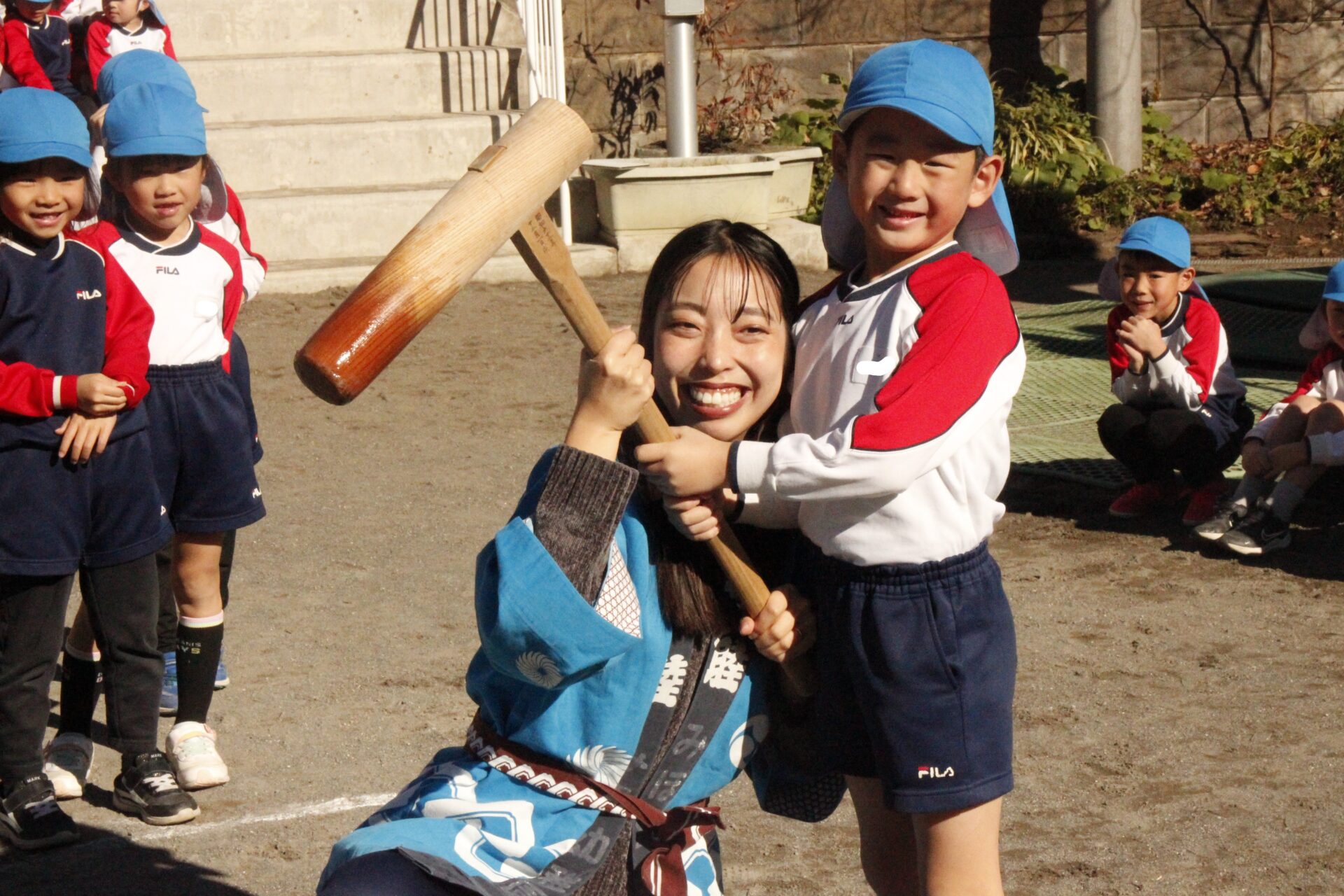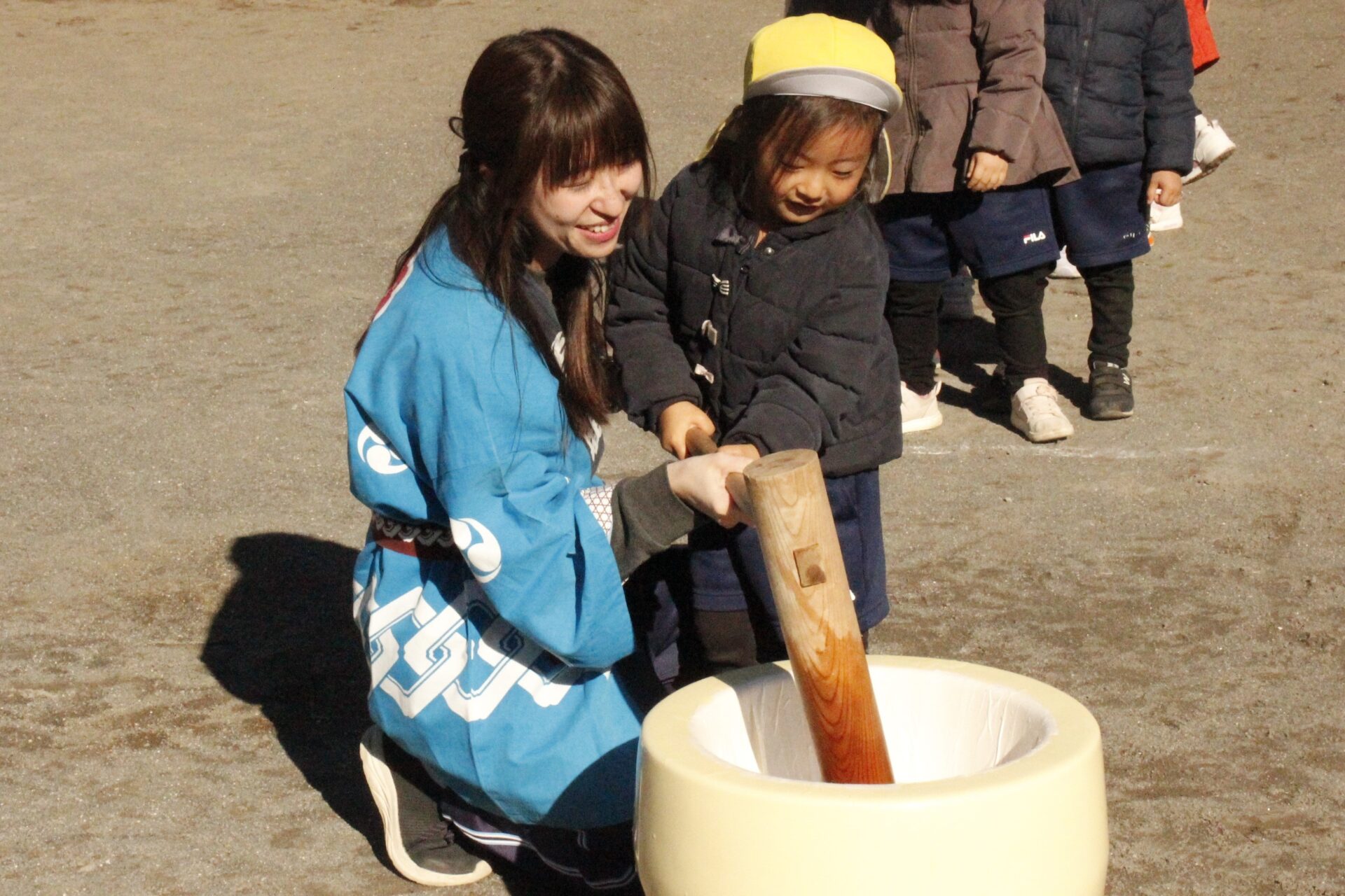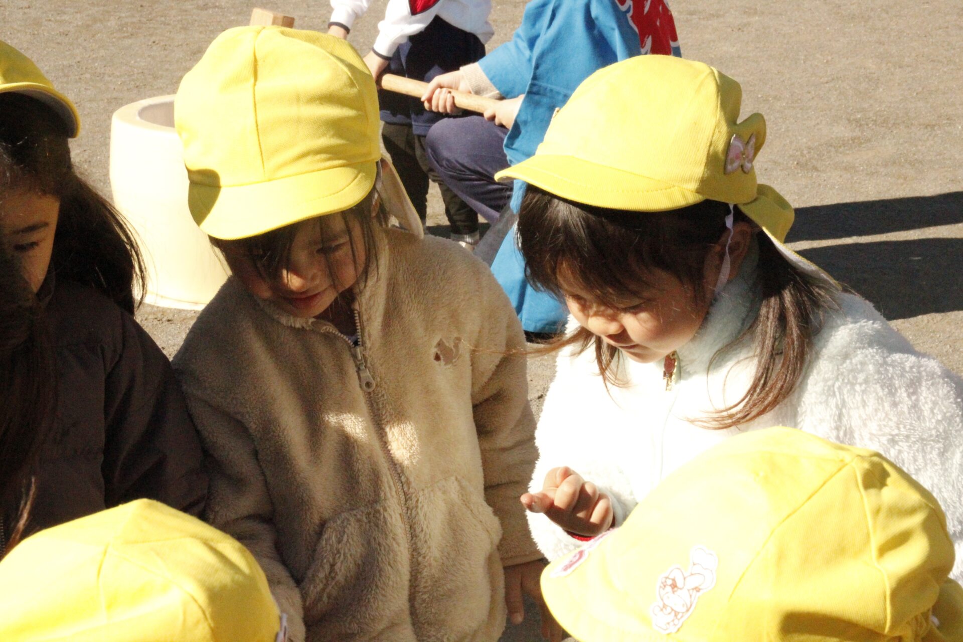 12月15日(月)みほ幼稚園園庭にてお餅つきを行いました。みほ幼稚園では、お子様に日本の伝統文化を継承する意味から毎年12月にお餅つきを行っています。必ず皆がお餅をつけるようにし、ついたお餅は鏡餅にしています。鏡餅は神様へのお供え物であり、1年の無事や健康を願ったり、幸福を分けてもらう意味があります。そんな意味を子ども達に伝えながら、子ども達の幸福や健やかな成長を願い、これからも日々の保育に努めてまいります。