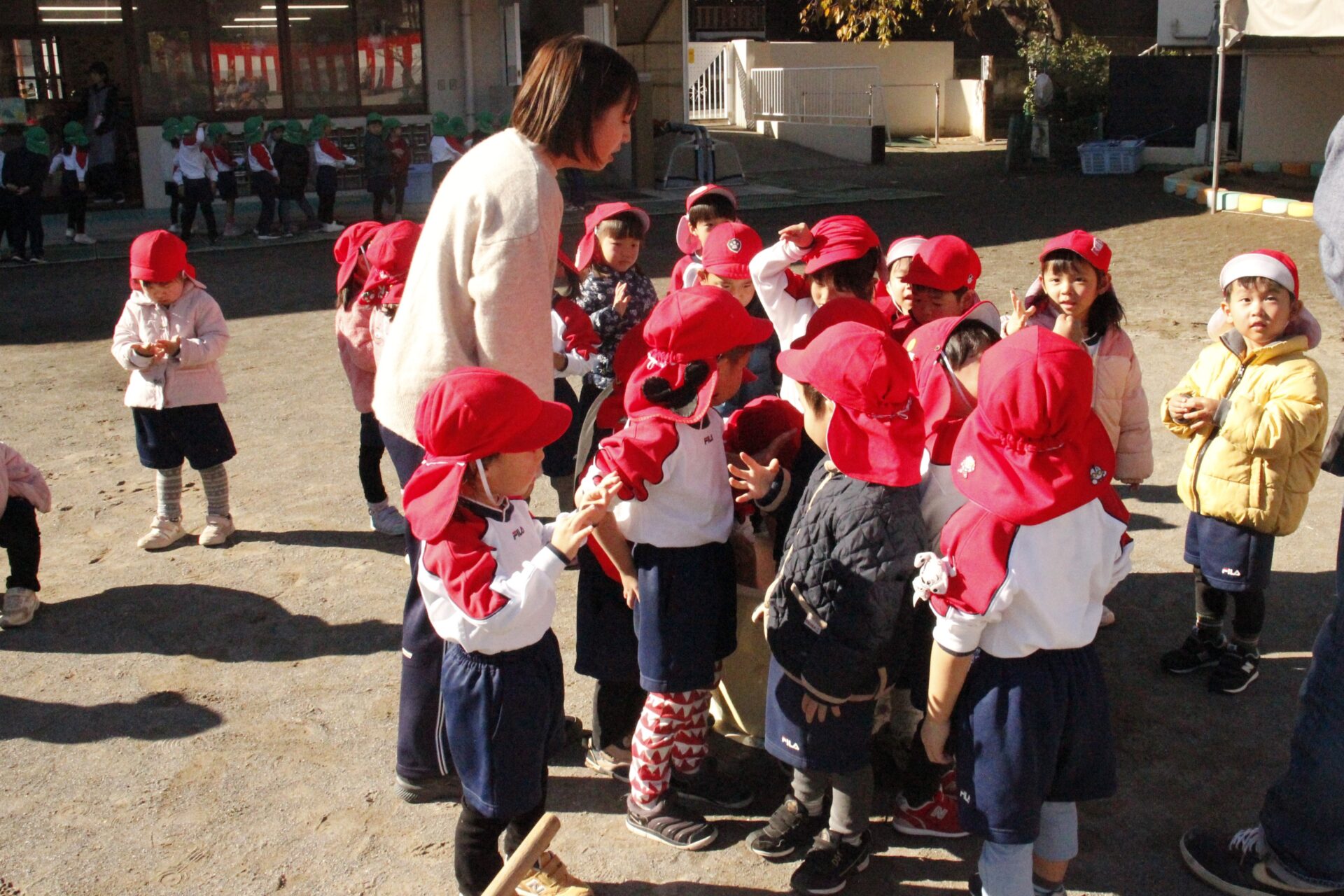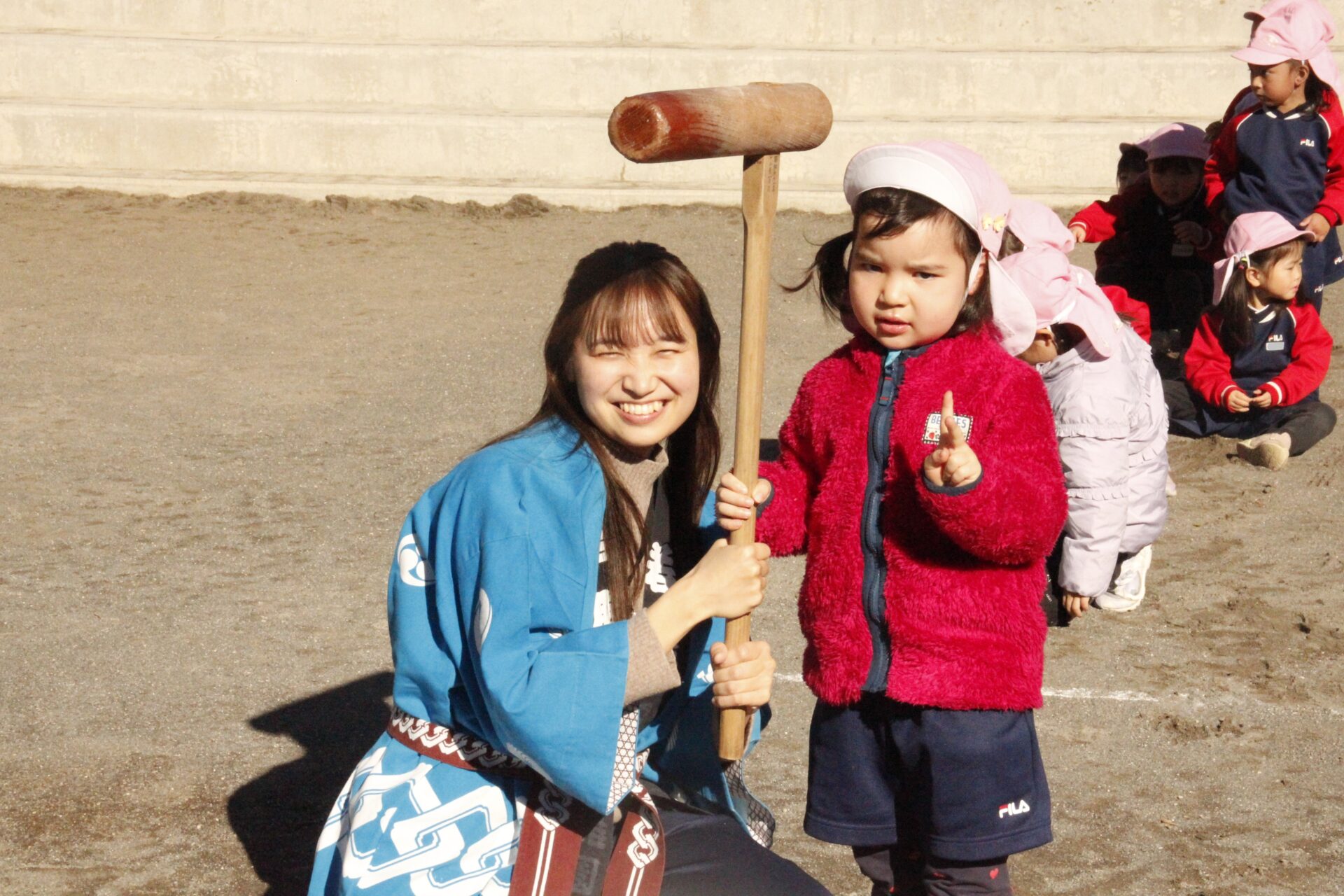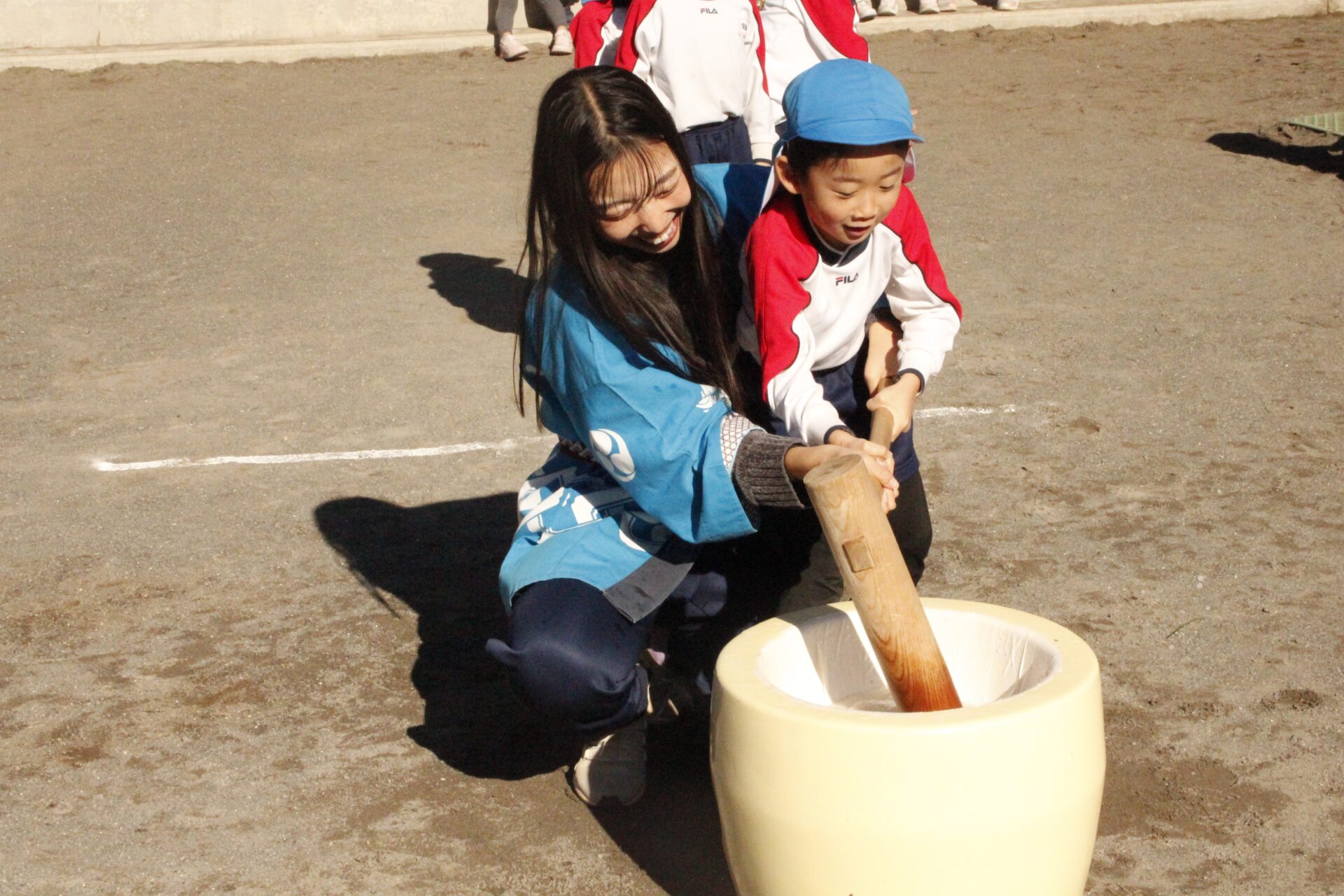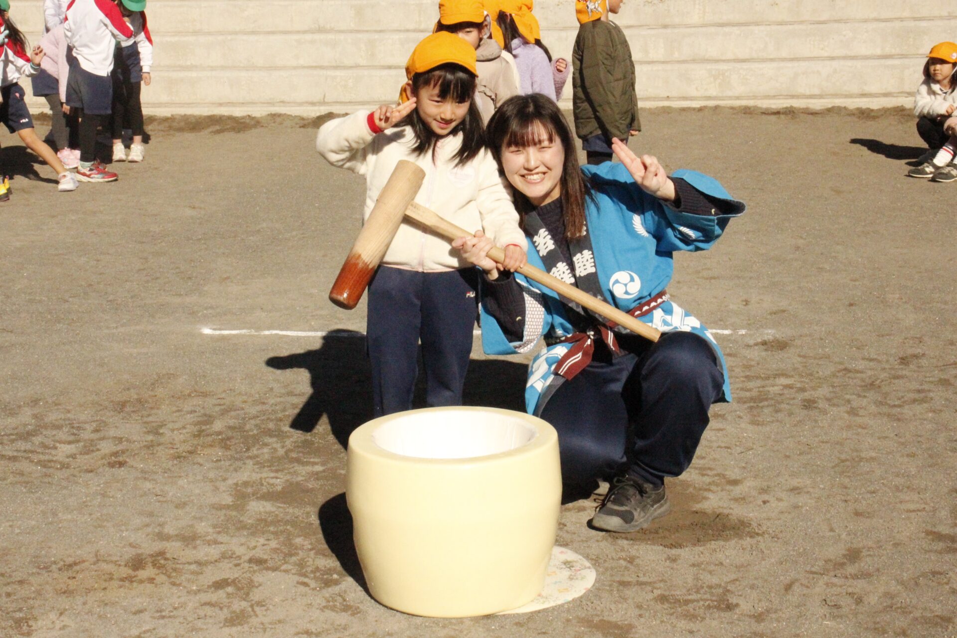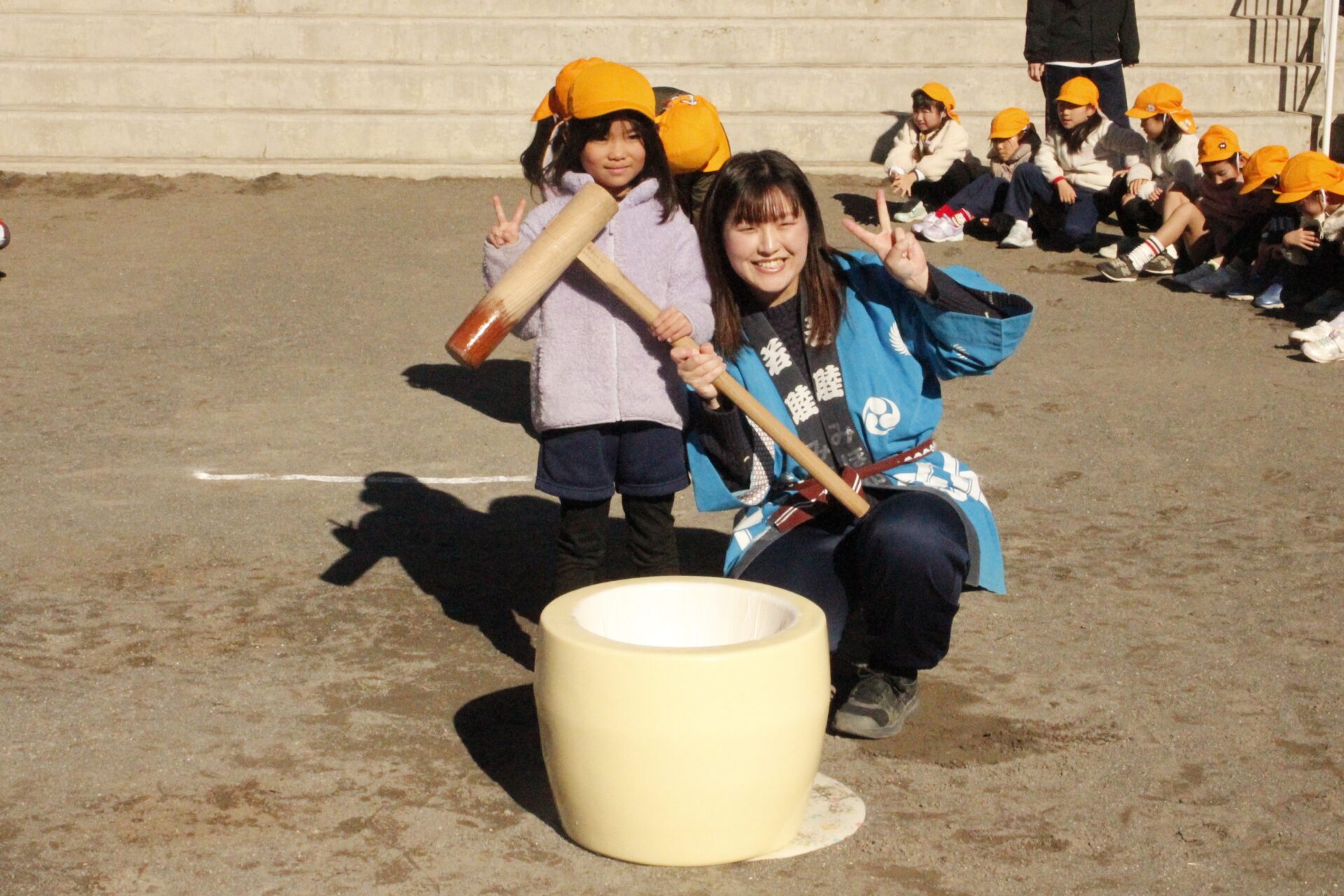 12月15日(月)みほ幼稚園園庭にてお餅つきを行いました。みほ幼稚園では、お子様に日本の伝統文化を継承する意味から毎年12月にお餅つきを行っています。必ず皆がお餅をつけるようにし、ついたお餅は鏡餅にしています。鏡餅は神様へのお供え物であり、1年の無事や健康を願ったり、幸福を分けてもらう意味があります。そんな意味を子ども達に伝えながら、子ども達の幸福や健やかな成長を願い、これからも日々の保育に努めてまいります。