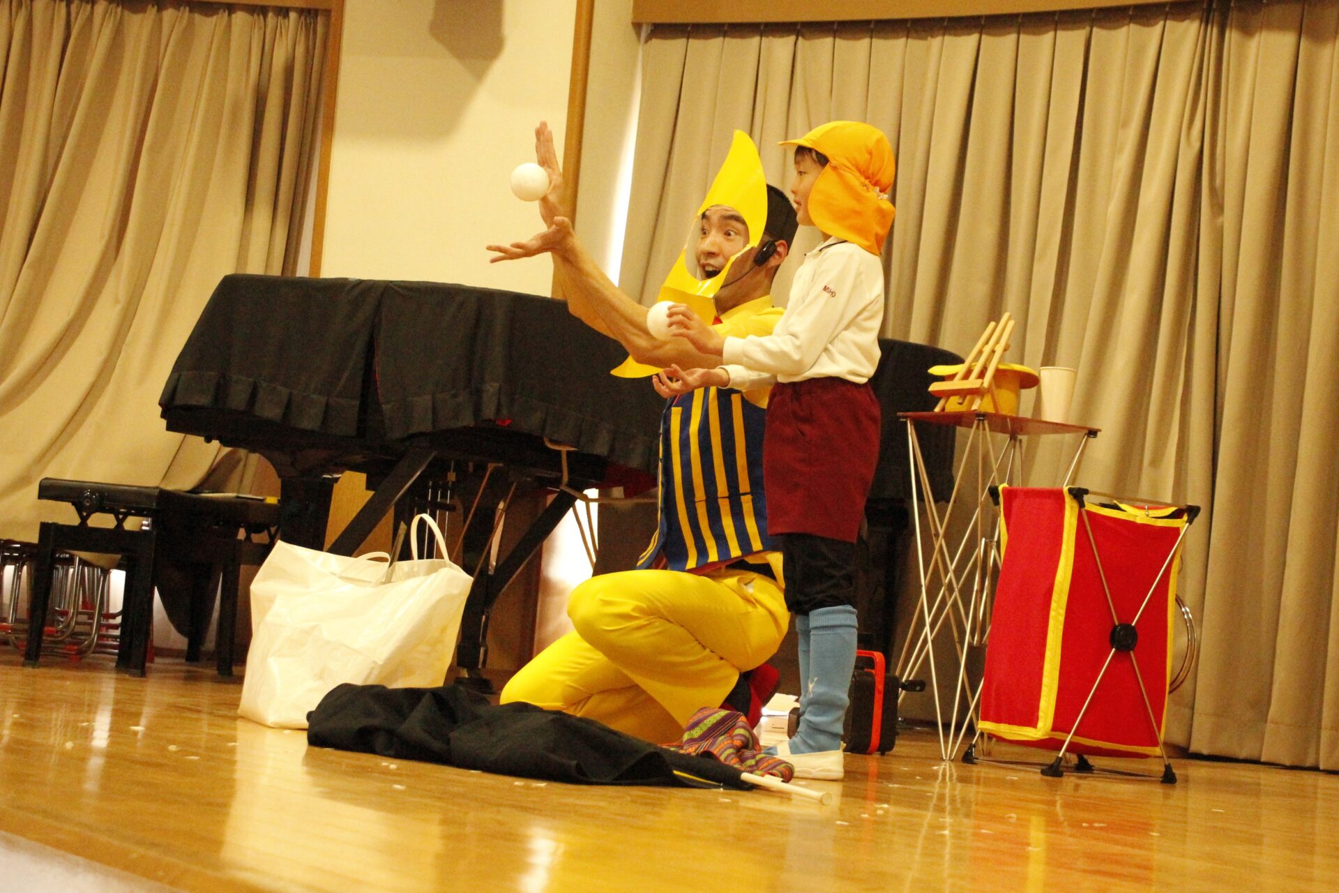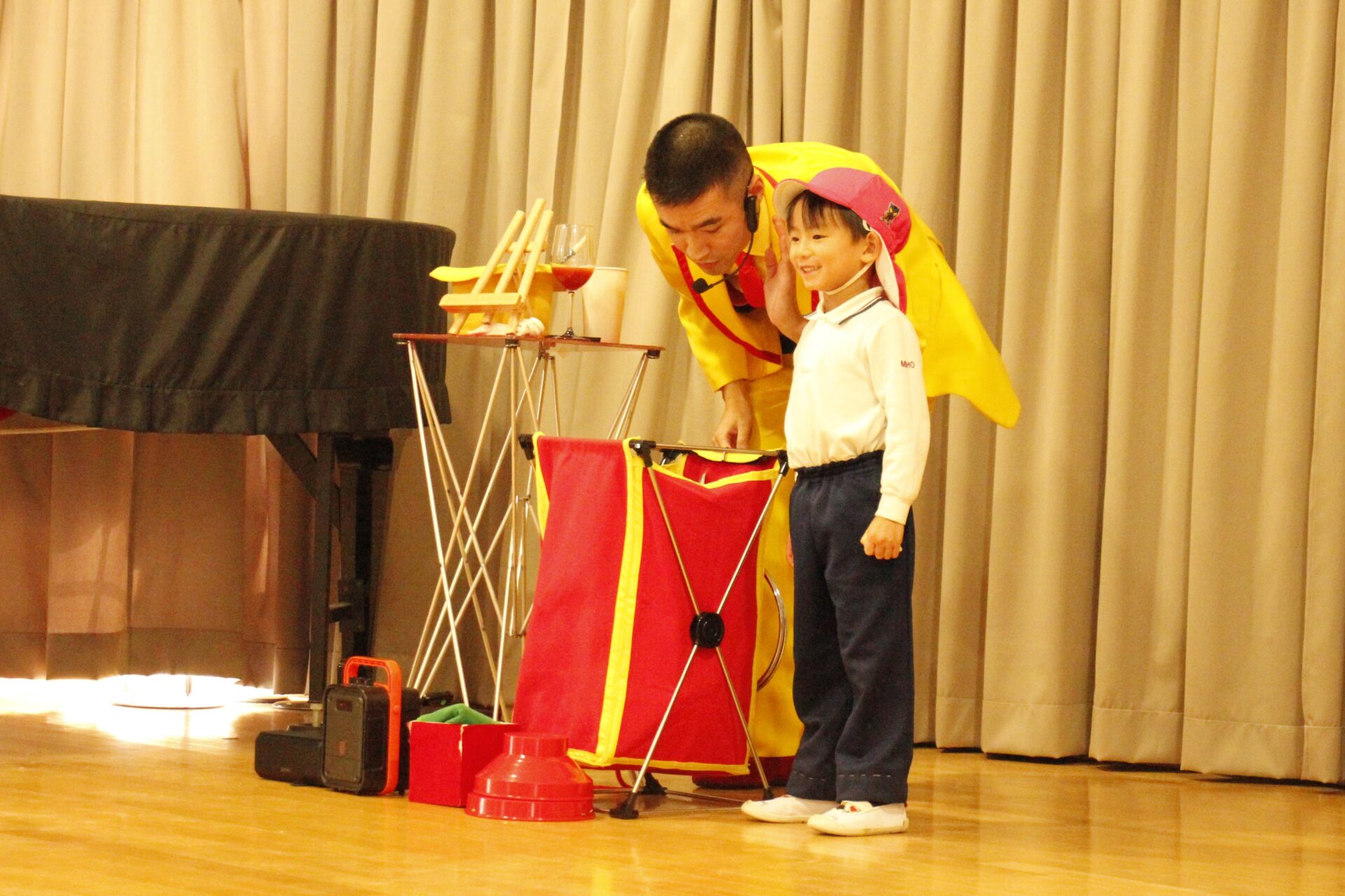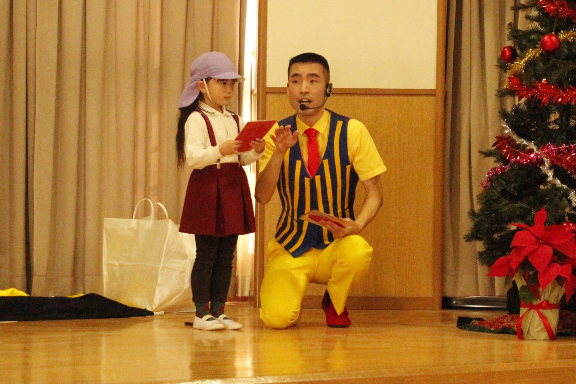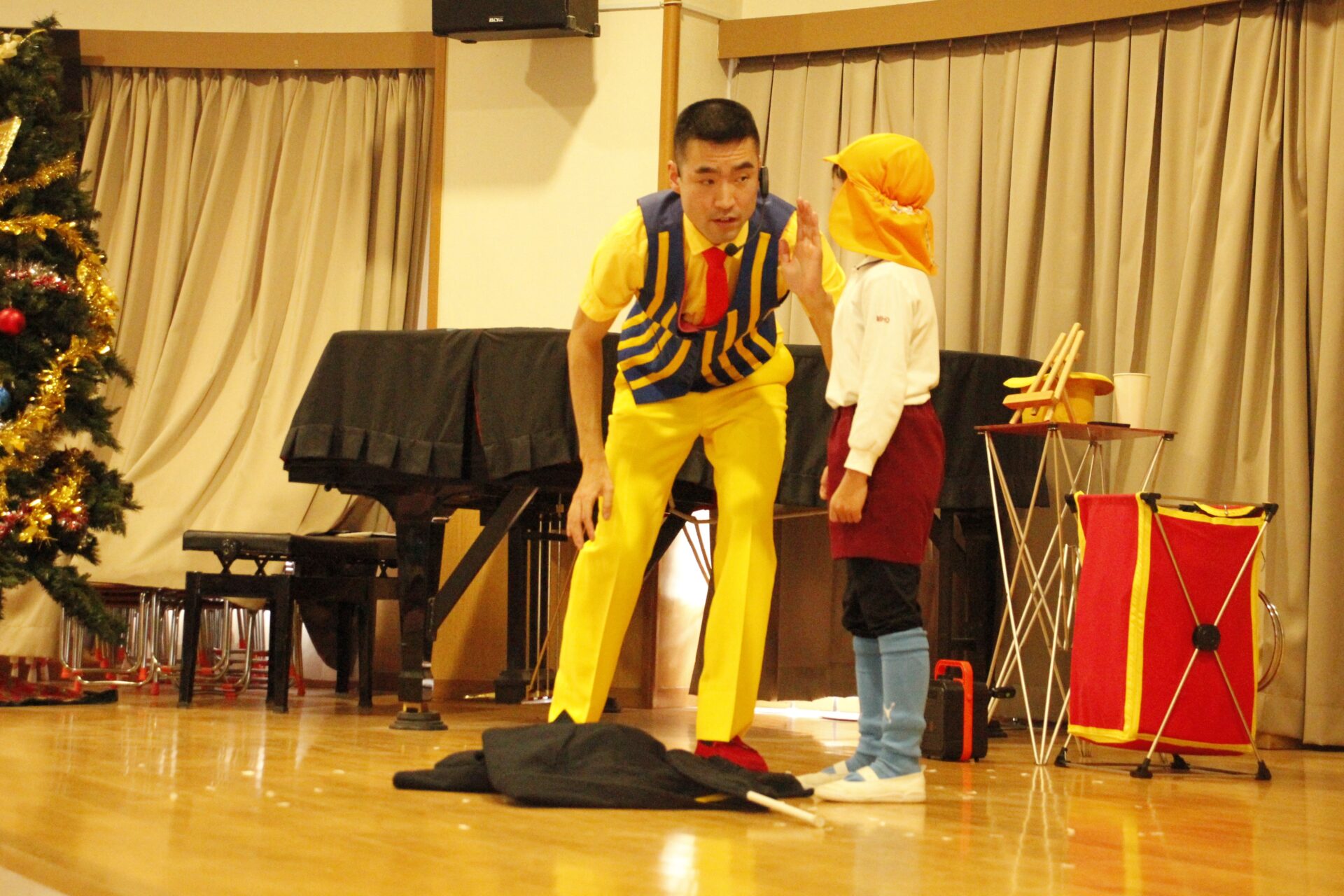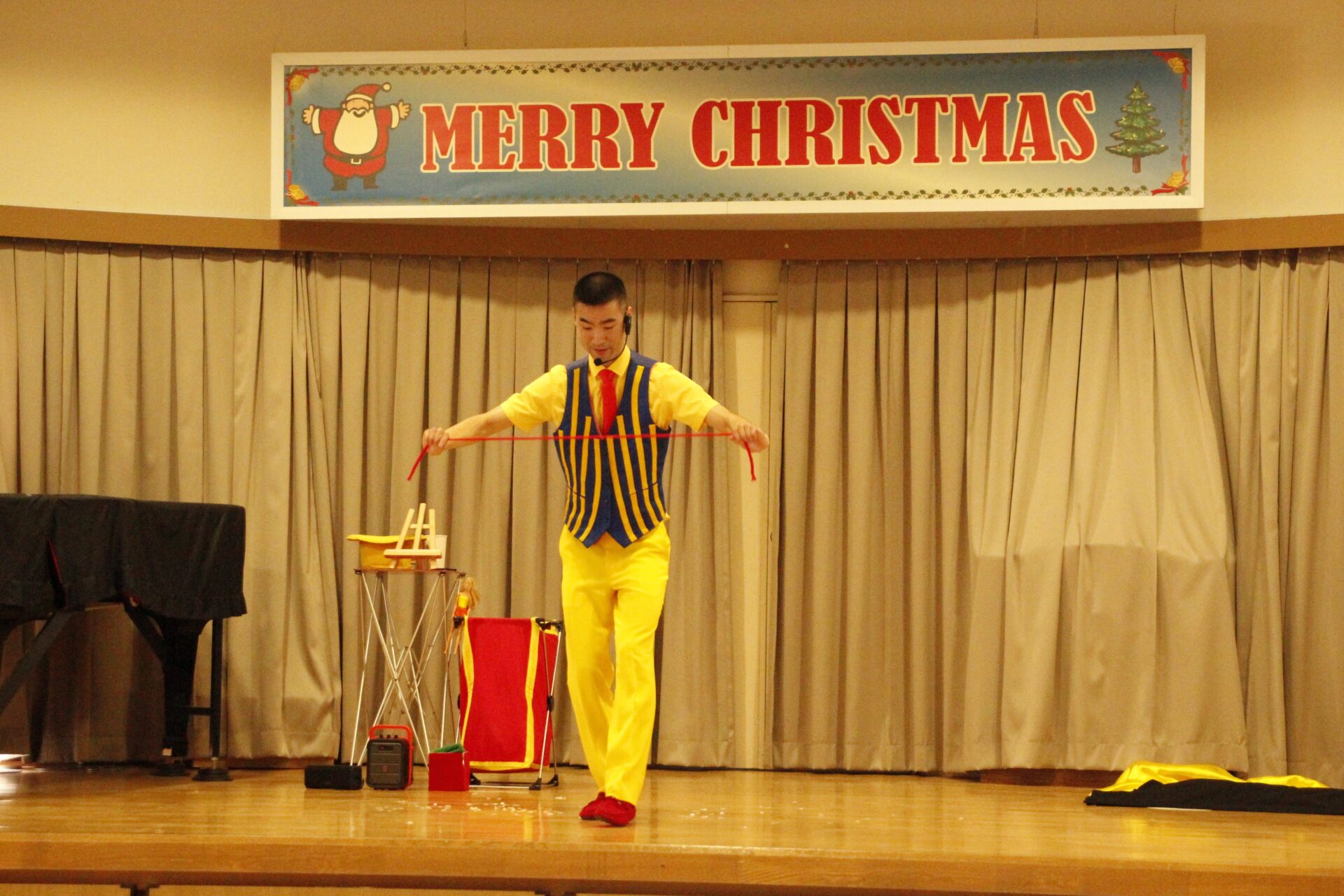 2学期の終業日の12月18日(木)みほ幼稚園ホールにてクリスマス会を行いました。クリスマス会では、パフォーマーの『マジカルおじさん』に楽しいマジックショーをしてもらいました。