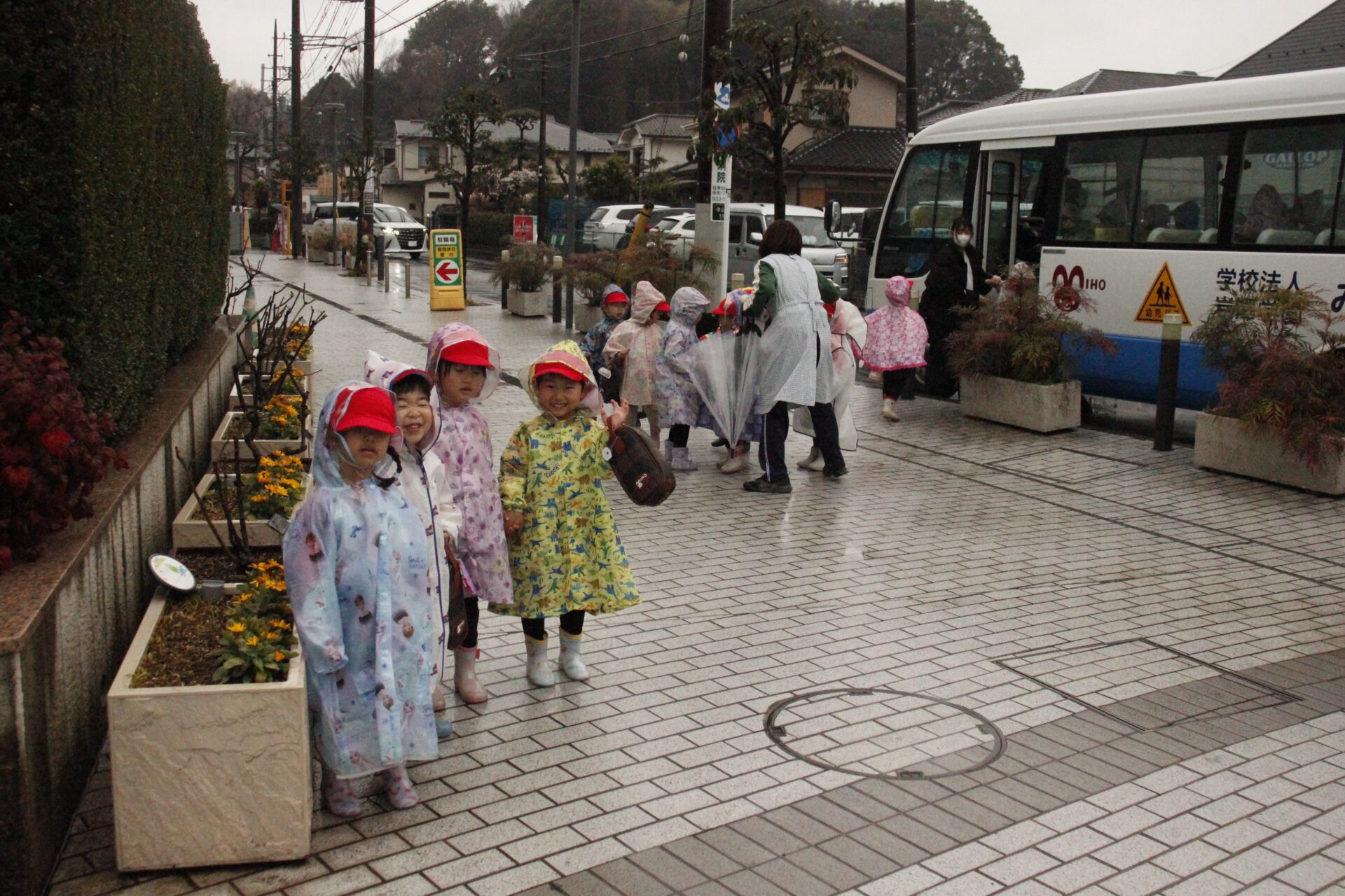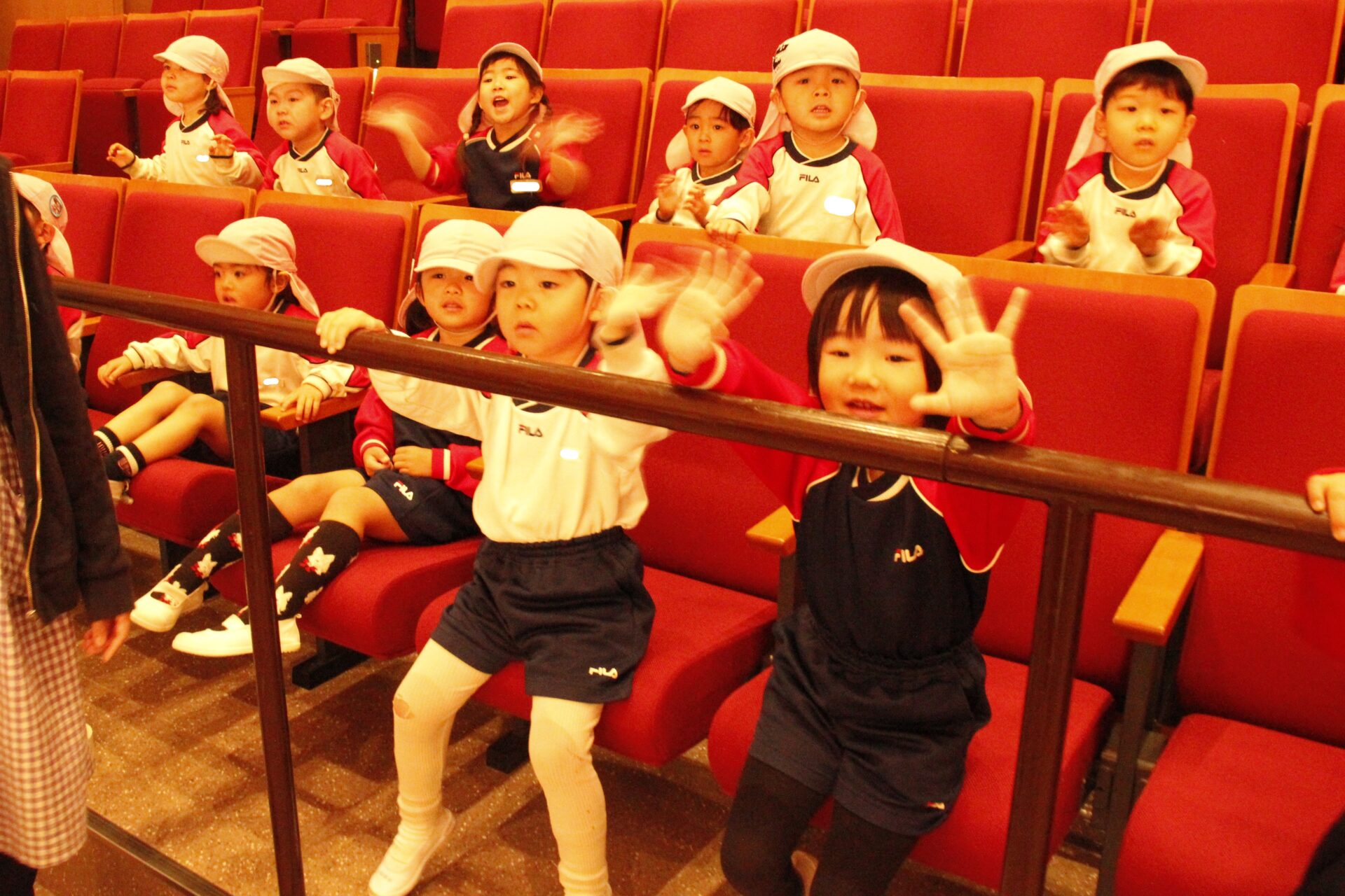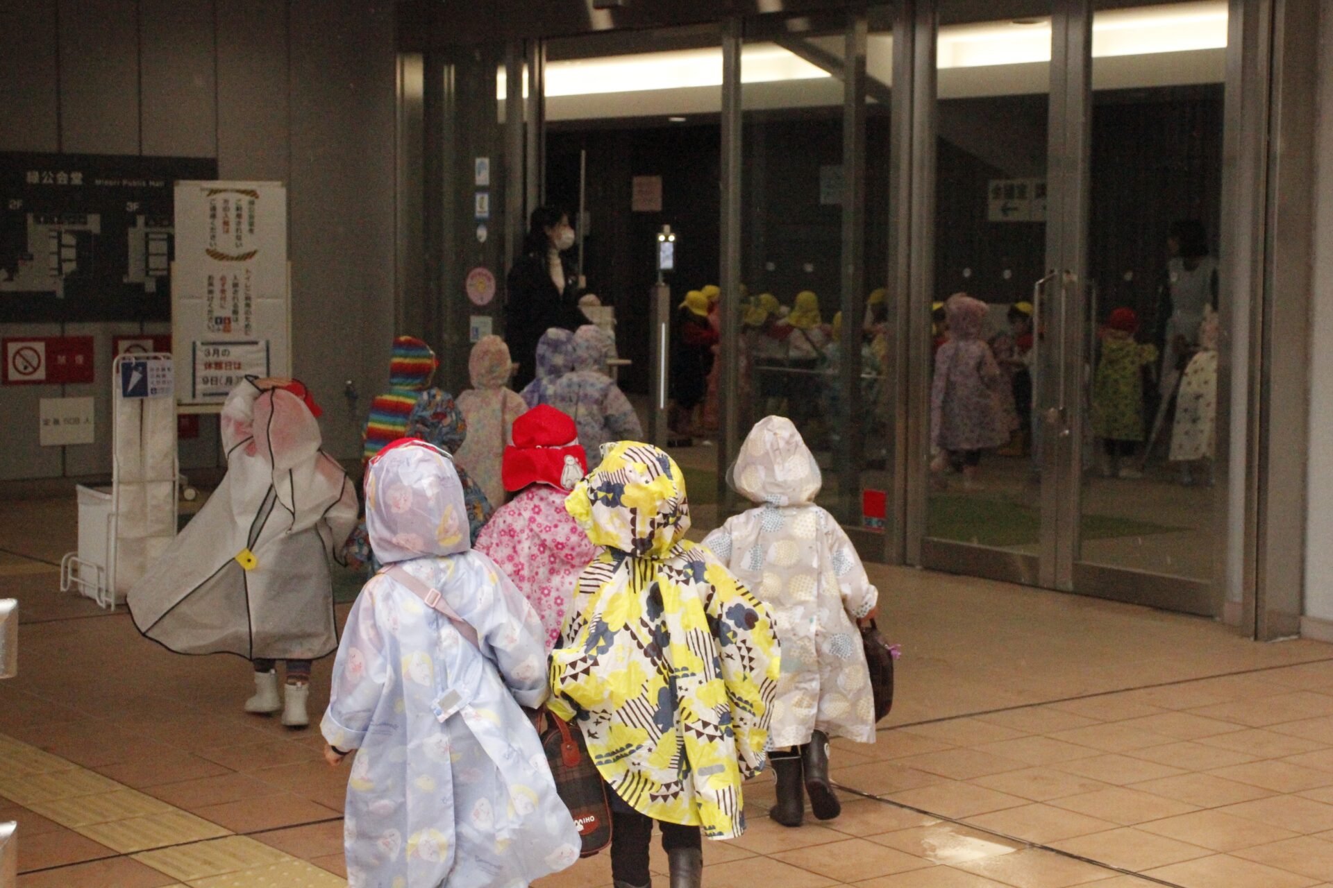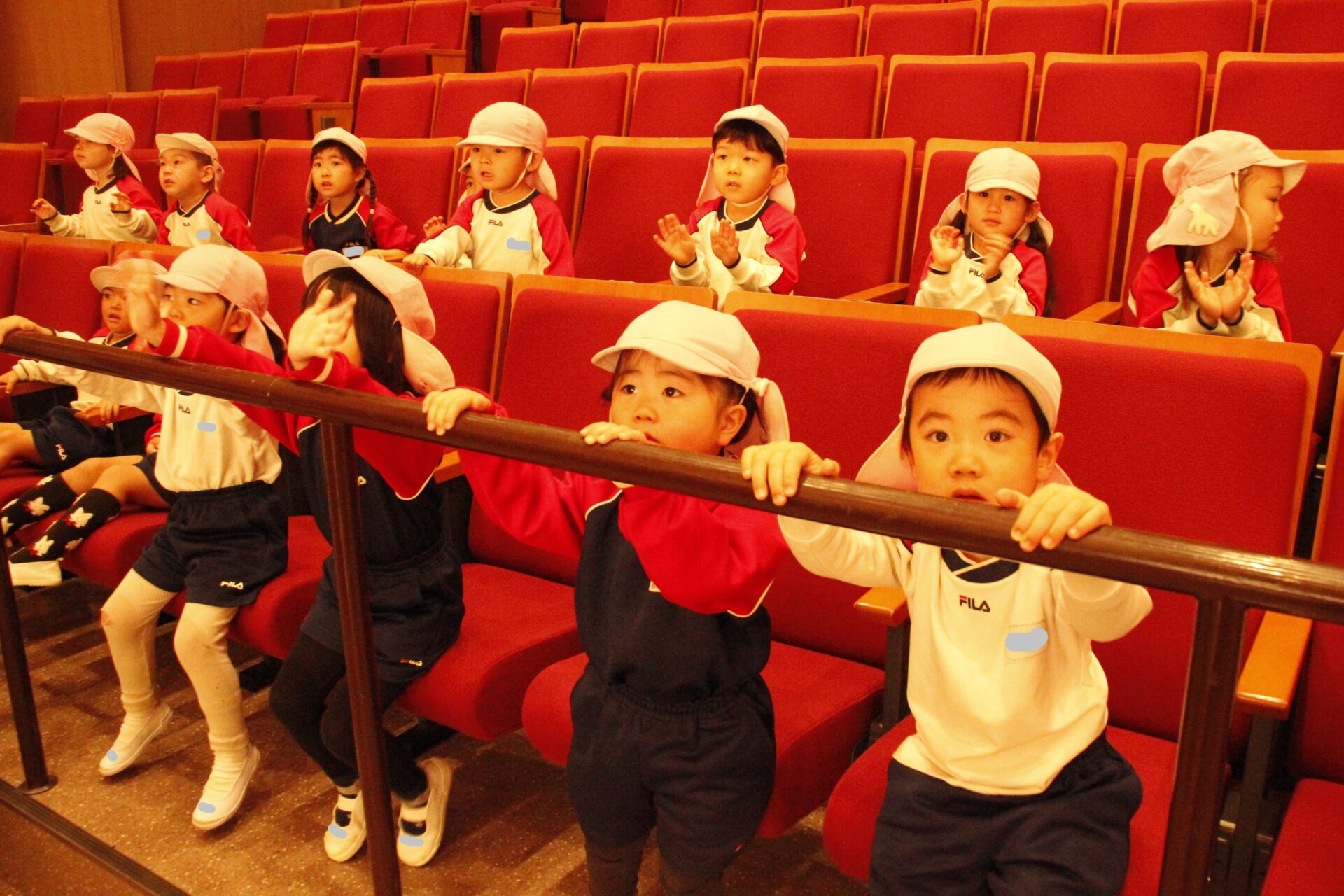 2月25日(水)、翌日に控えたお遊戯発表会のリハーサルを緑公会堂にて行いました。この日はあいにくの雨風の強い一日でしたが、移動のバスの中から子ども達のワクワクした様子が伺えました。