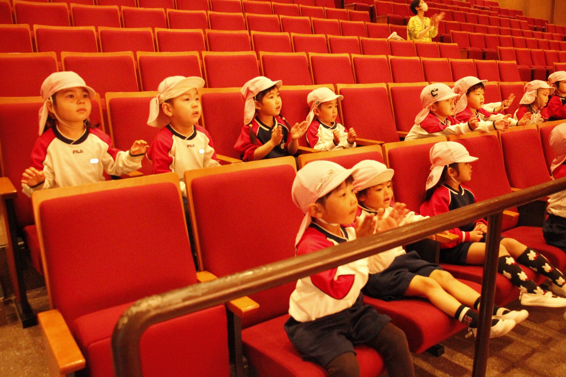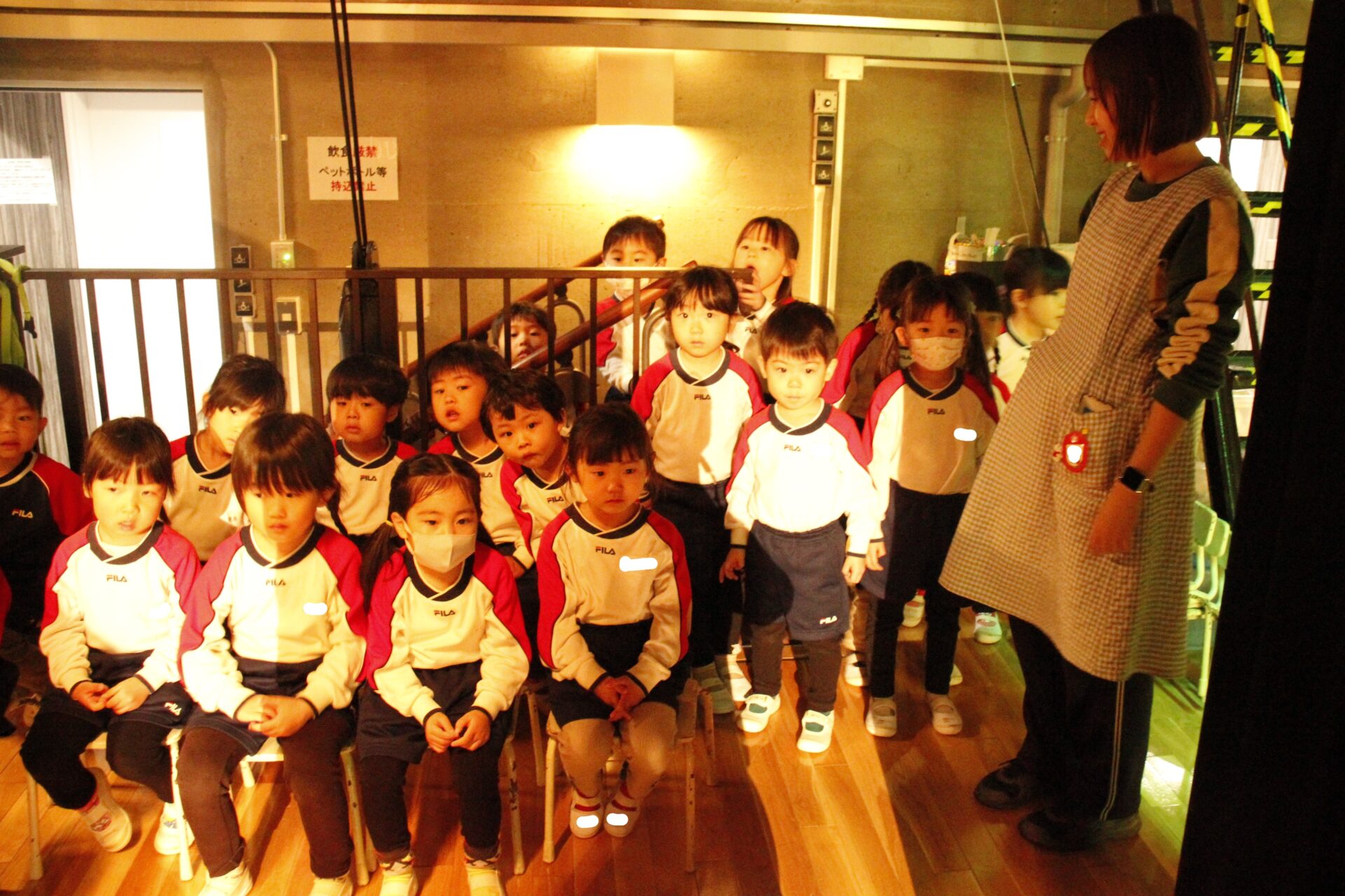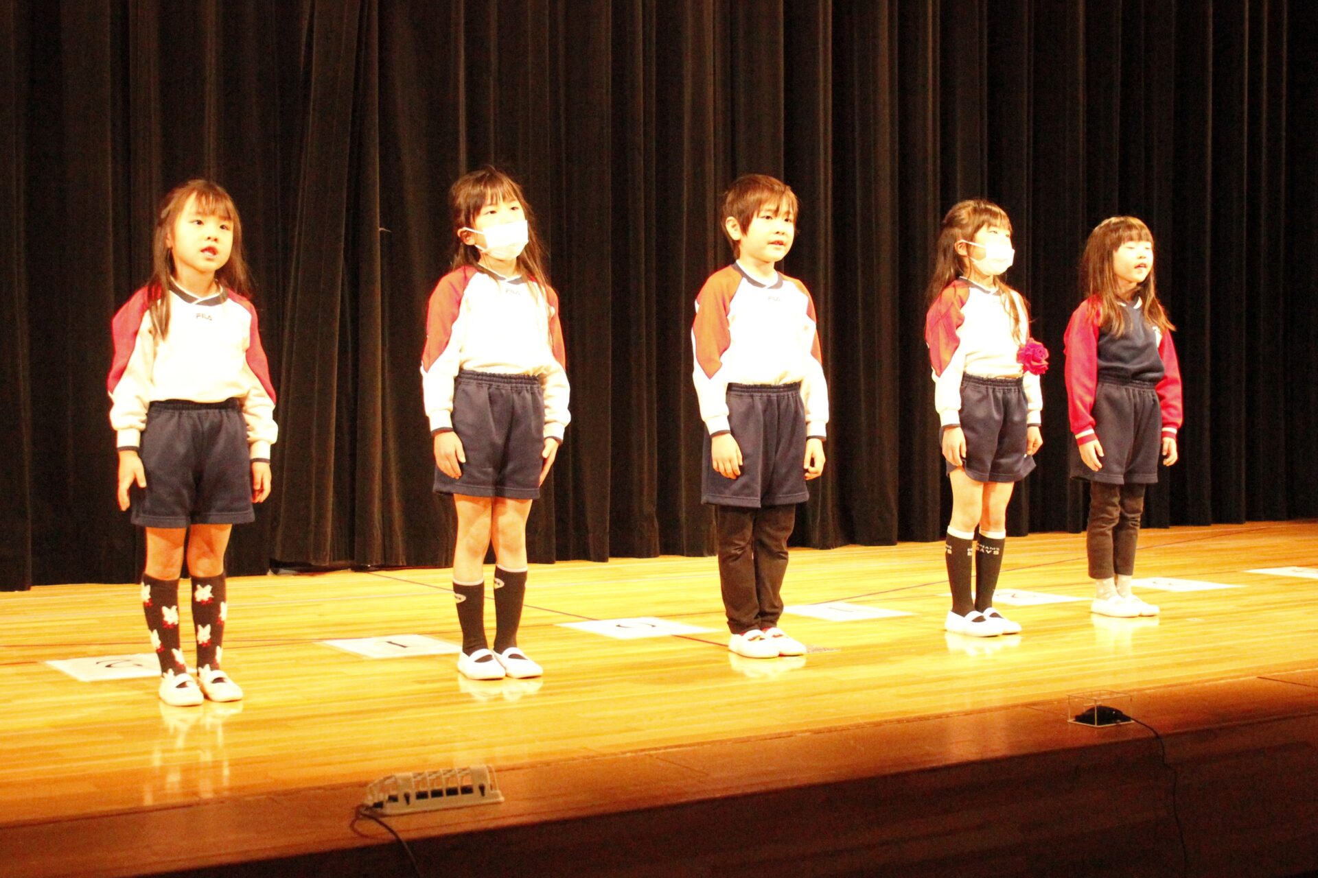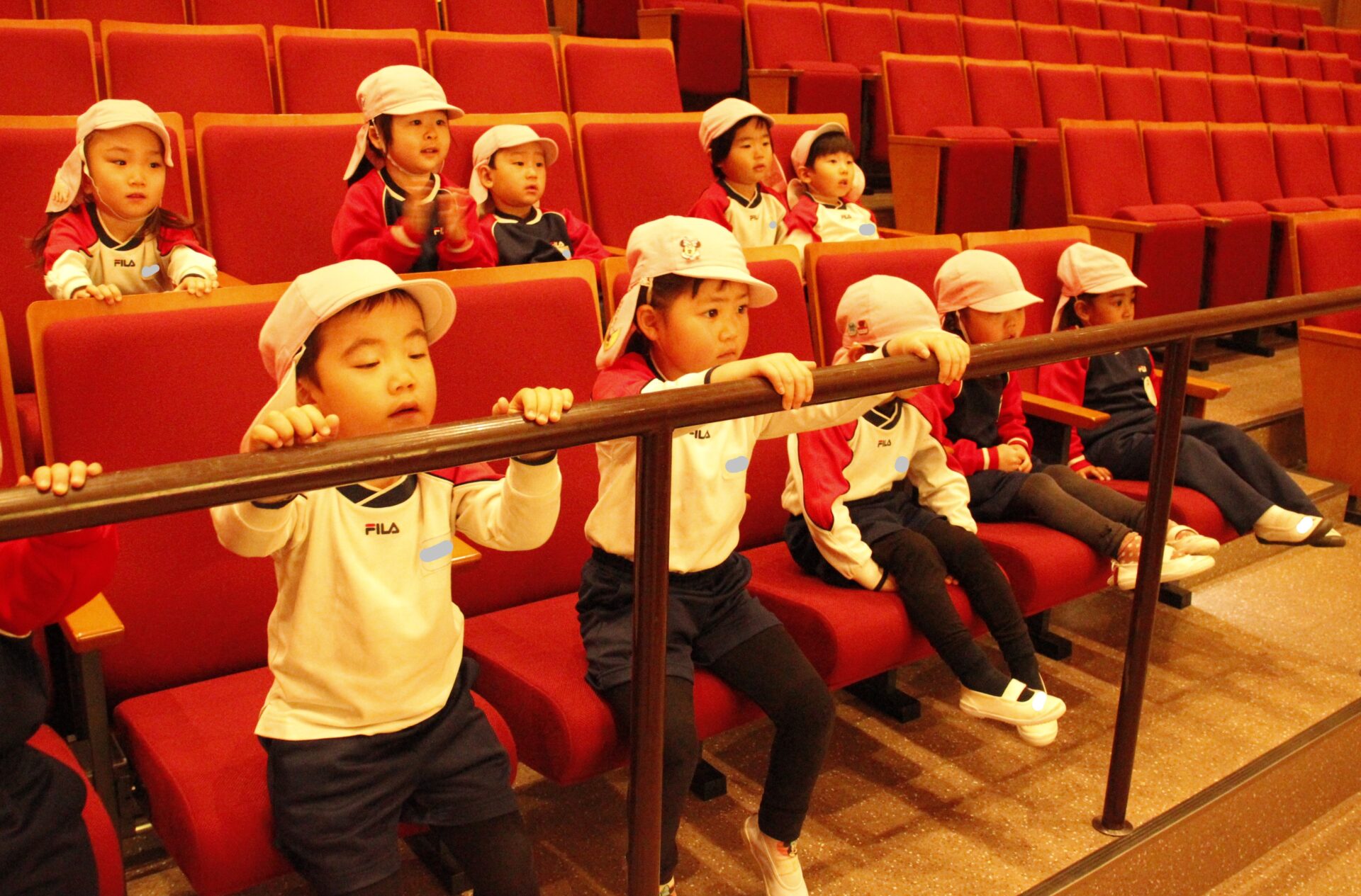 2月25日(水)、翌日に控えたお遊戯発表会のリハーサルを緑公会堂にて行いました。この日はあいにくの雨風の強い一日でしたが、移動のバスの中から子ども達のワクワクした様子が伺えました。
