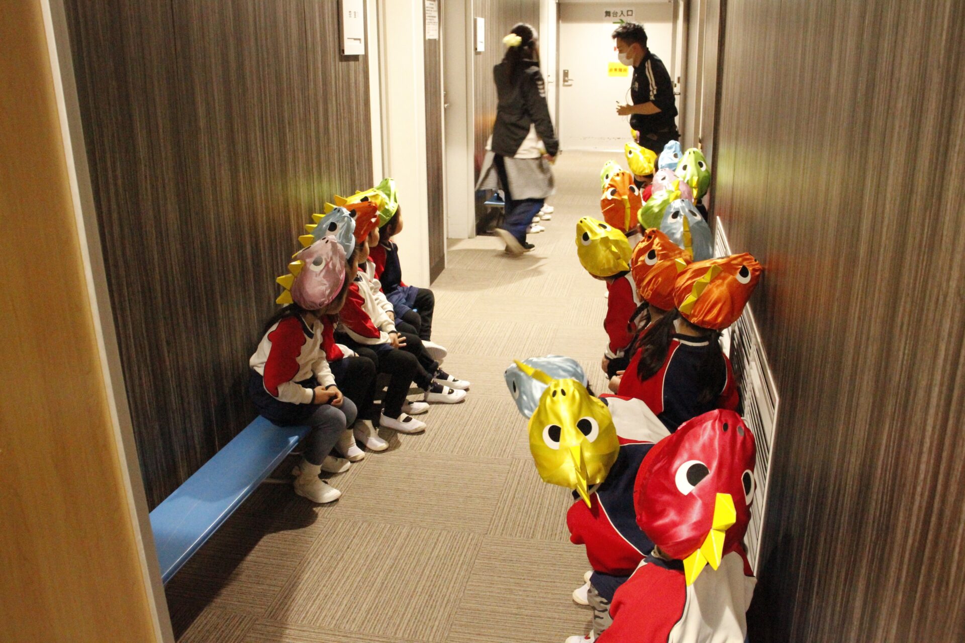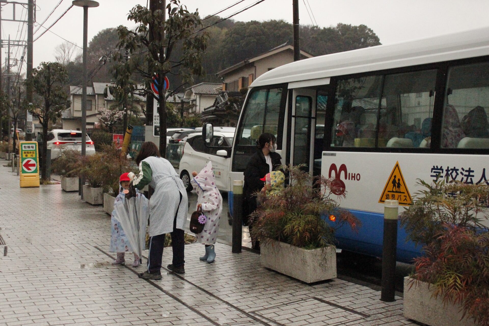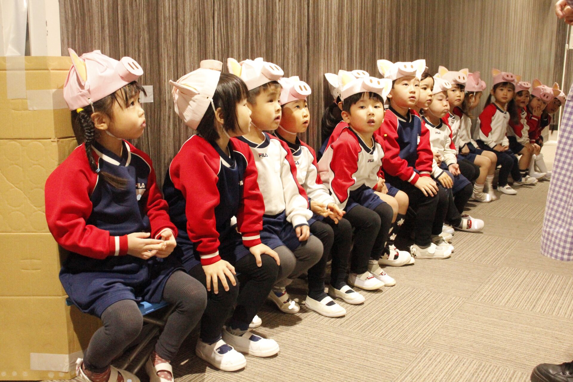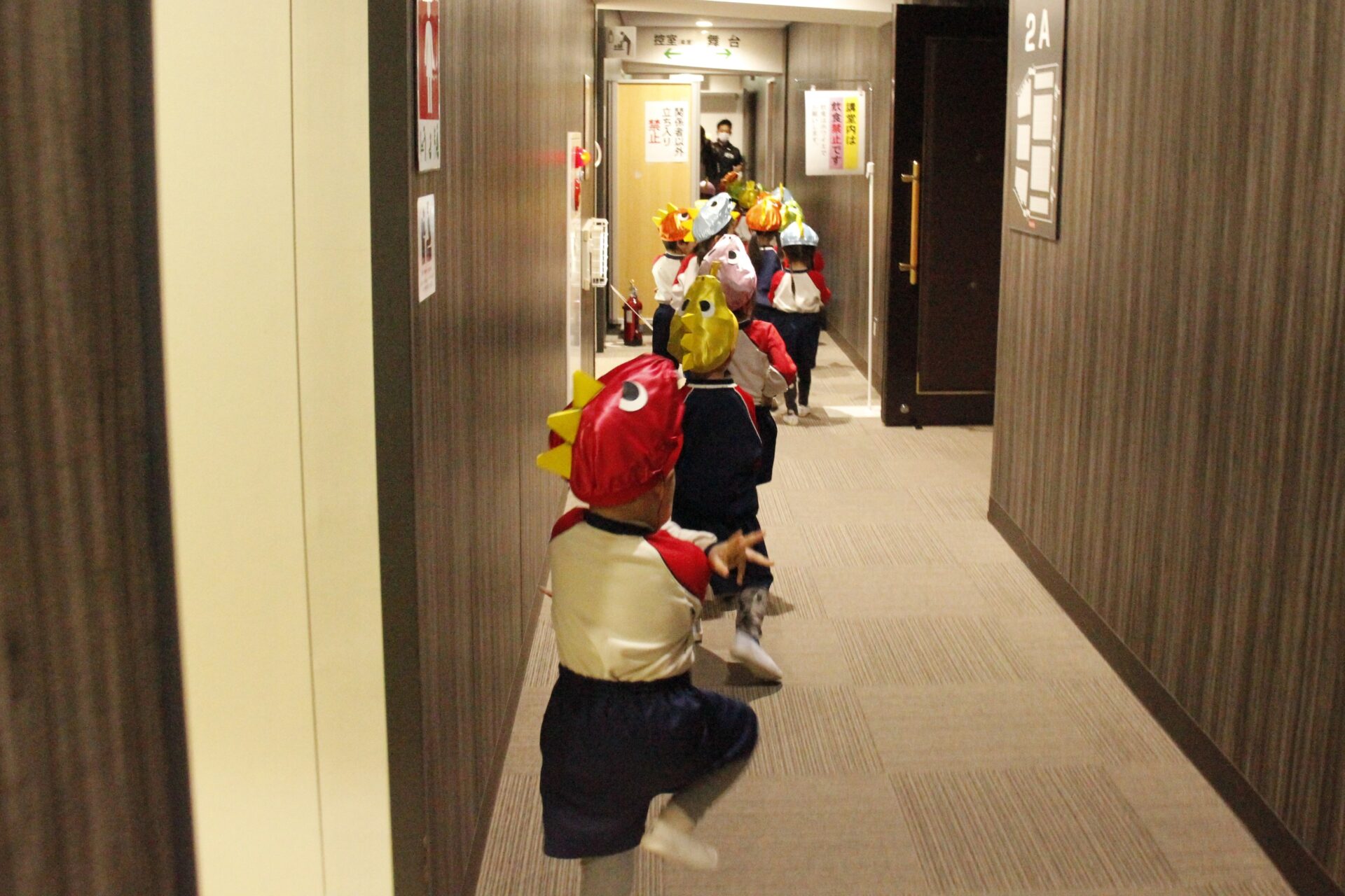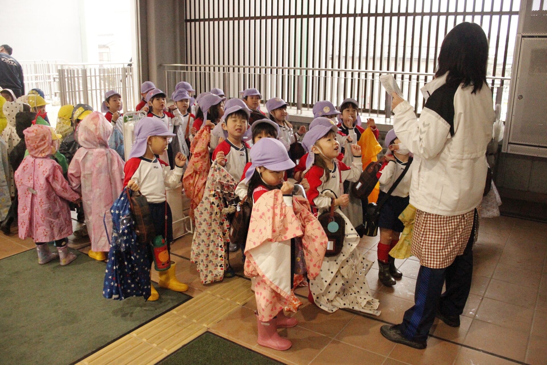 2月25日(水)、翌日に控えたお遊戯発表会のリハーサルを緑公会堂にて行いました。この日はあいにくの雨風の強い一日でしたが、移動のバスの中から子ども達のワクワクした様子が伺えました。