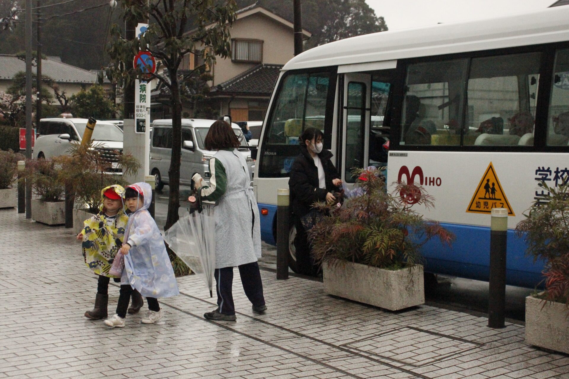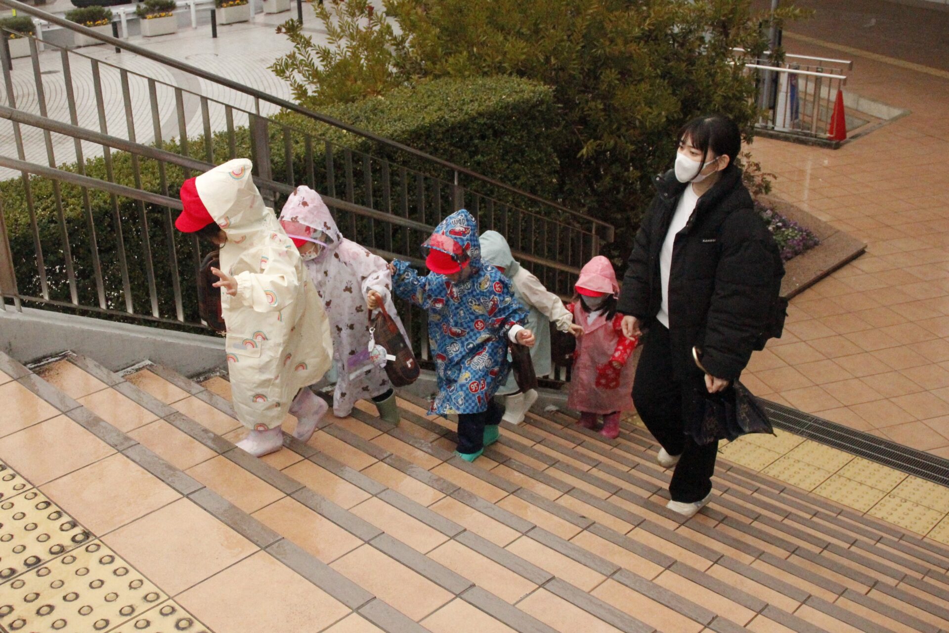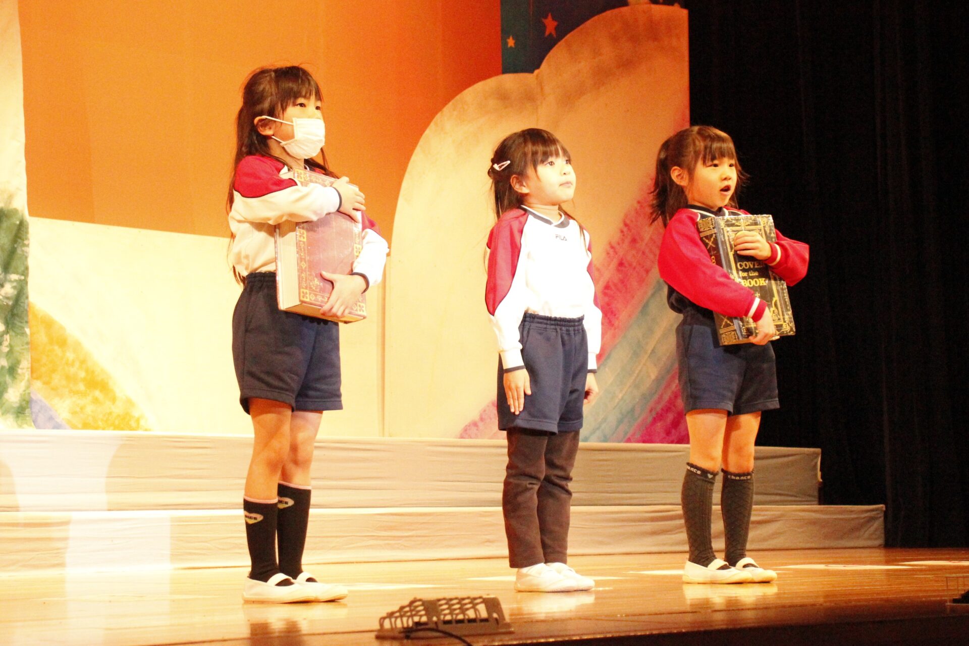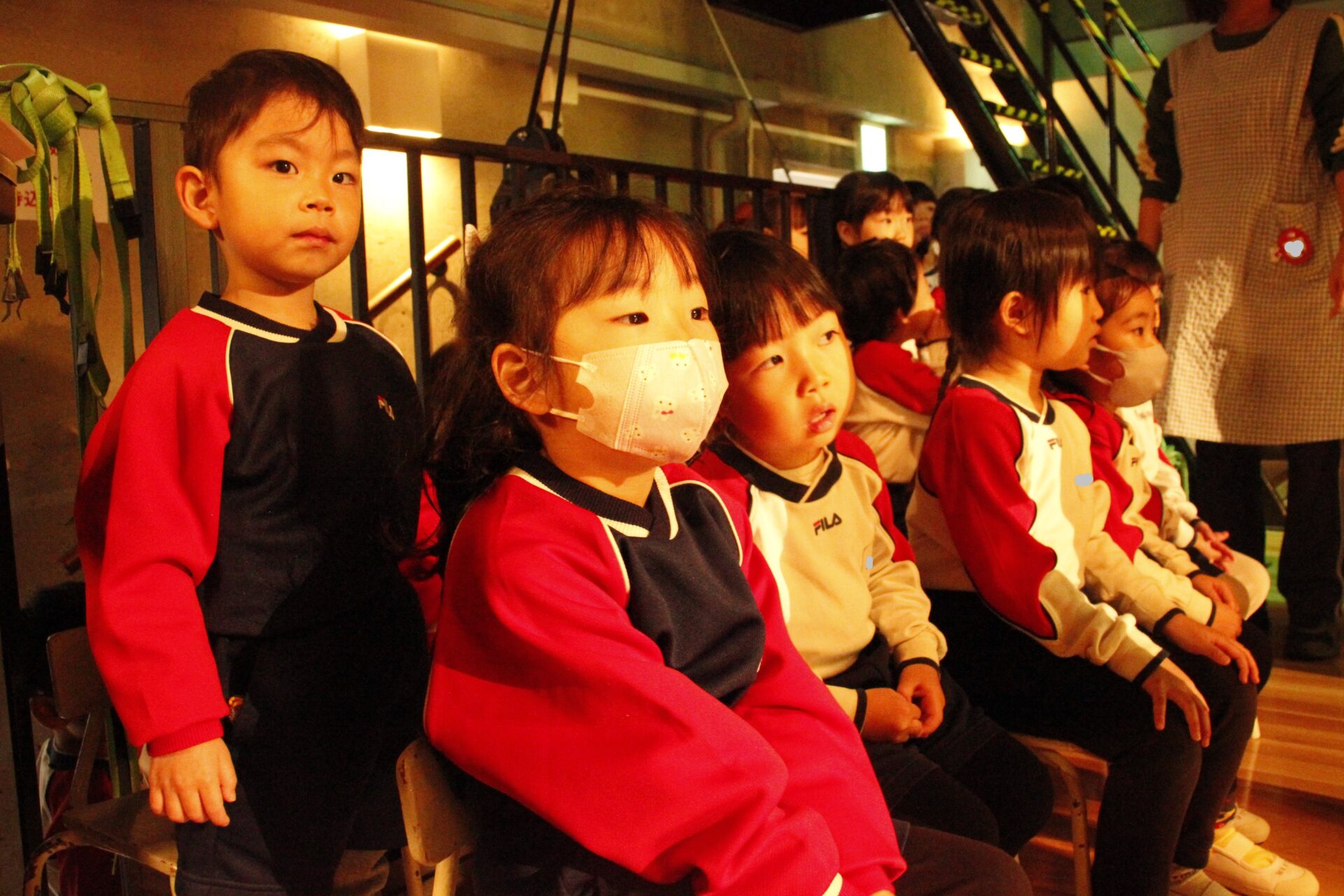 2月25日(水)、翌日に控えたお遊戯発表会のリハーサルを緑公会堂にて行いました。この日はあいにくの雨風の強い一日でしたが、移動のバスの中から子ども達のワクワクした様子が伺えました。
