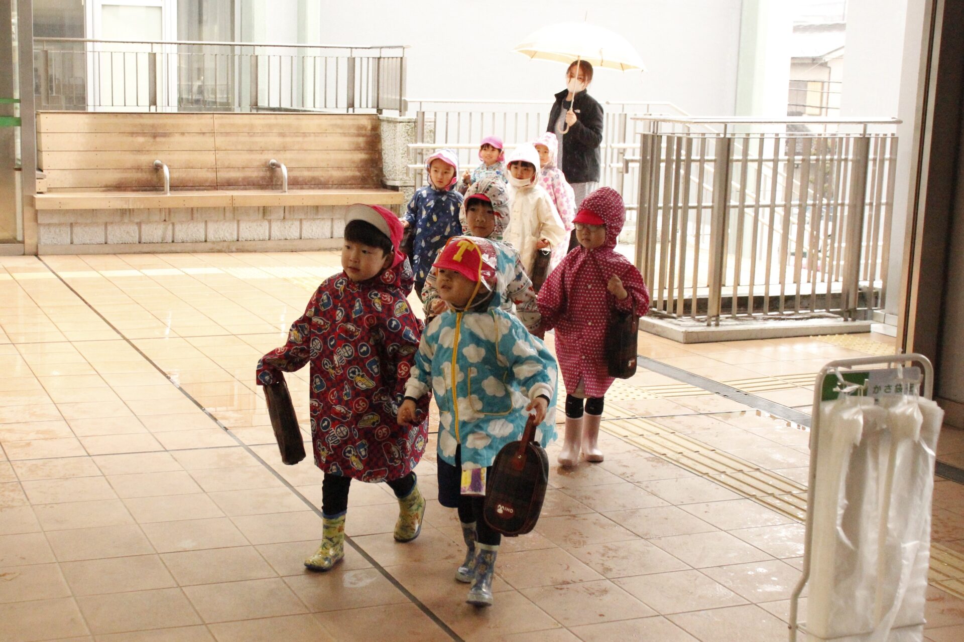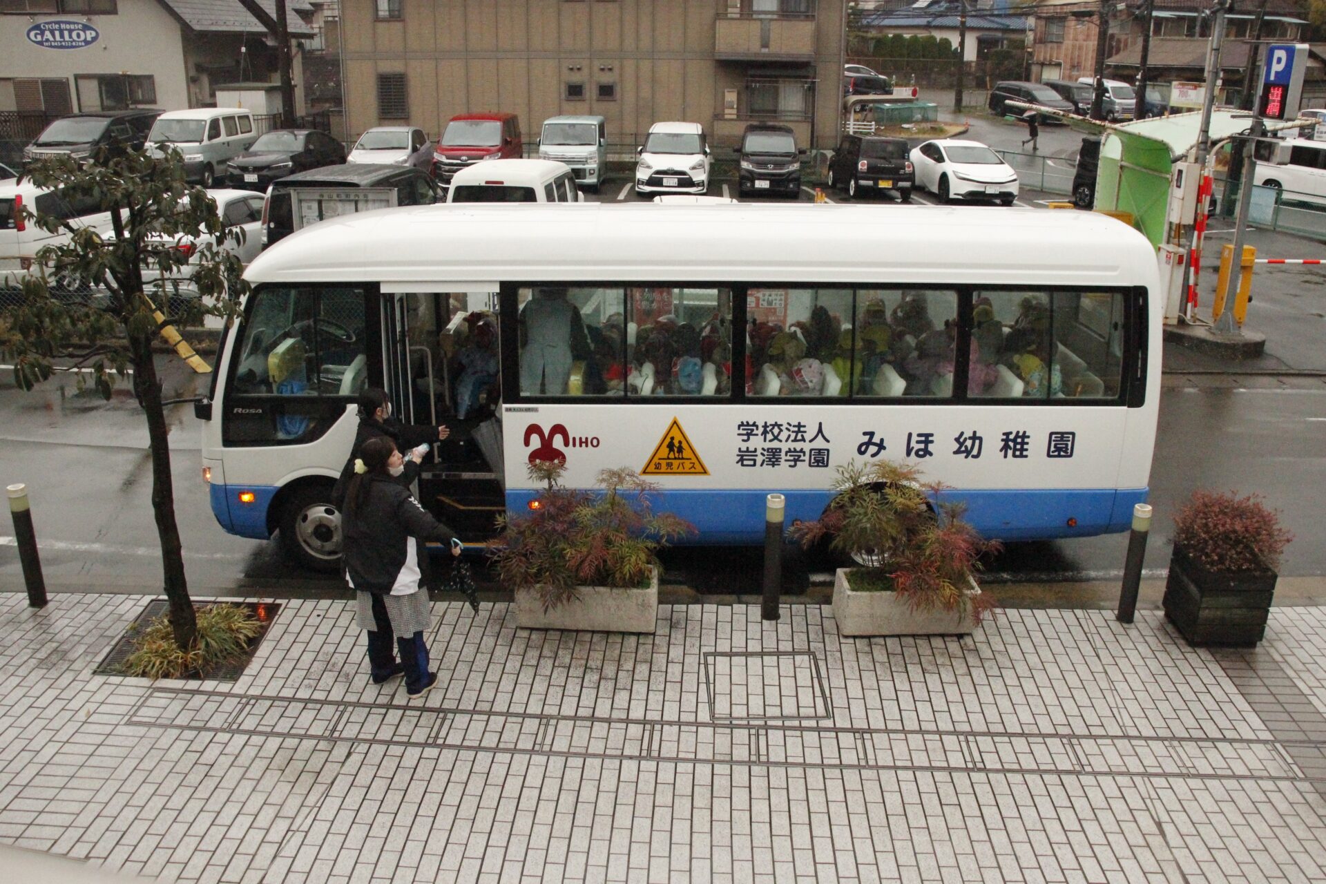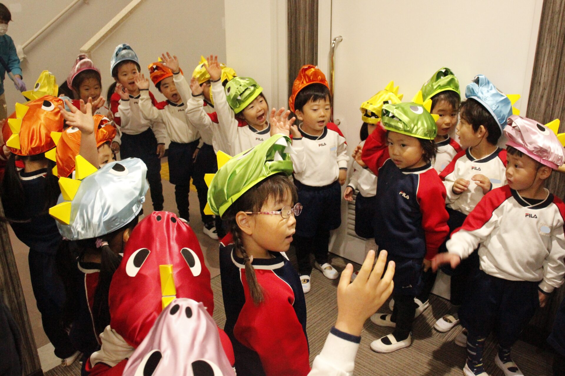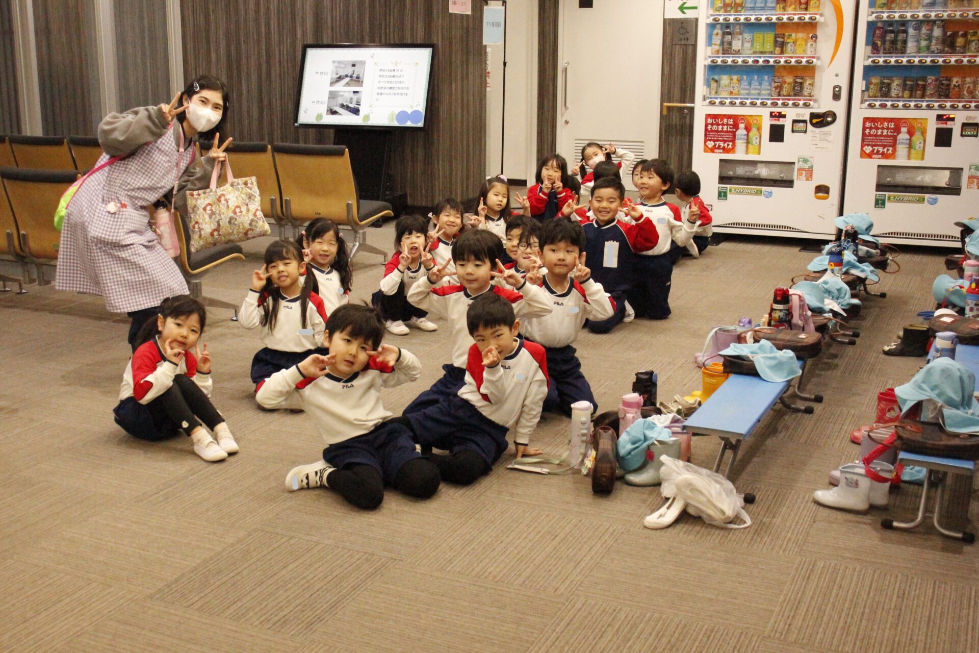 2月25日(水)、翌日に控えたお遊戯発表会のリハーサルを緑公会堂にて行いました。この日はあいにくの雨風の強い一日でしたが、移動のバスの中から子ども達のワクワクした様子が伺えました。